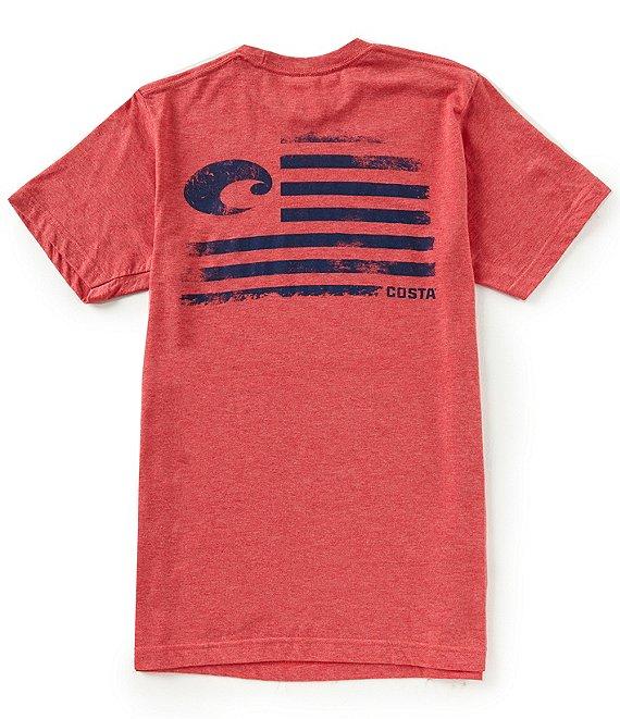 From Costa, this T-shirt features: Crew neckline short sleeves Costa logo on front left chest American flag with Costa logo incorporated in graphic on back square hem polyester/cotton machine wash/tumble dry Imported.