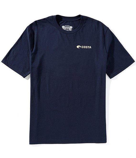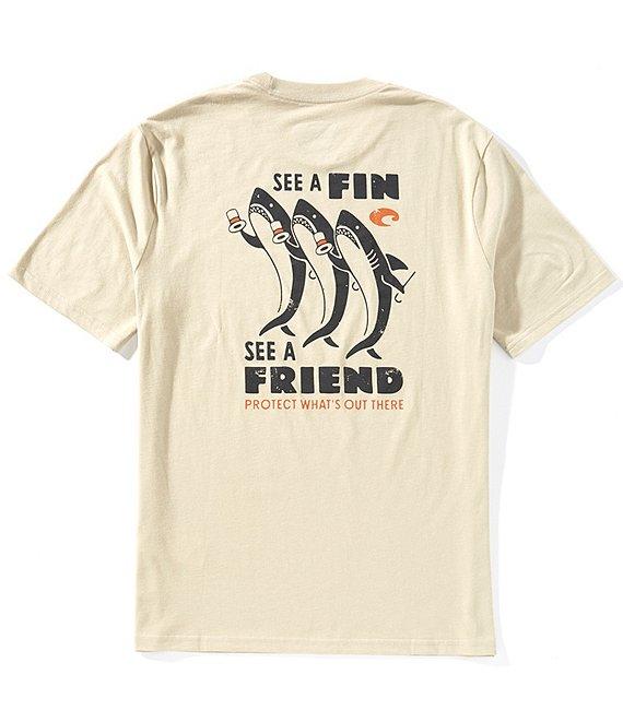From Costa, this t-shirt features: Crew neckline Short sleeves "Costa" logo and icon logo detail on the front "See A Fin" verbiage, shark graphic and "See A Friend" graphic non-PVC ink screen print on the back Pullover construction Cotton Machine wash/tumble dry Imported.