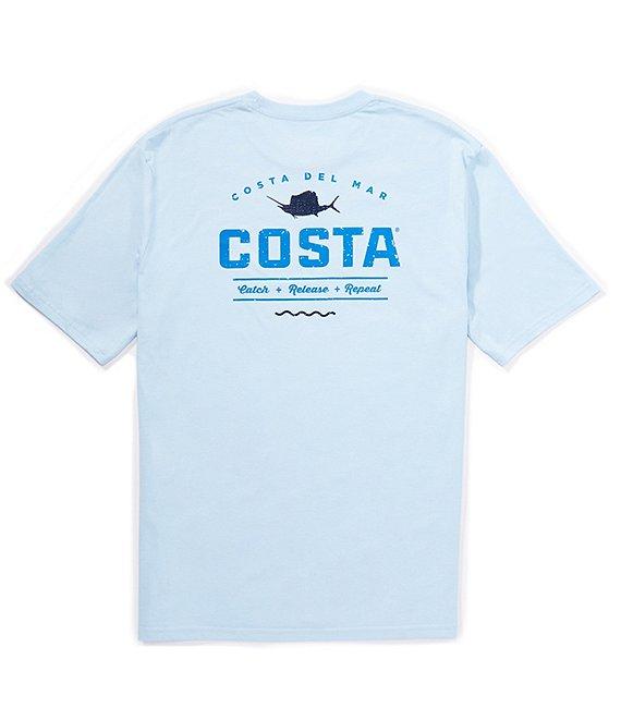 From Costa, this t-shirt features: Crew neckline Short sleeves Costa logo and icon logo detail on the front Costa logo, a fish graphic, and other verbiage on the back Pullover construction Combed ringspun cotton Machine wash/tumble dry Imported.