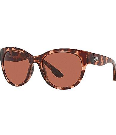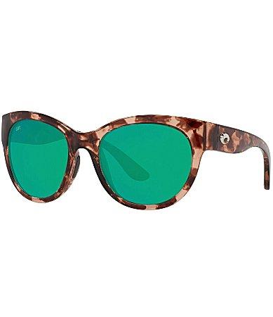 Features of the Costa Del Mar Maya Polarized Sunglasses Includes hard case 100% polarization and UV protection 100% Polarization kills reflected glAre Plastic lenses Are lightweight, impact- and scratch-resistant Glass lenses have the greatest clarity and Are scratch resistant