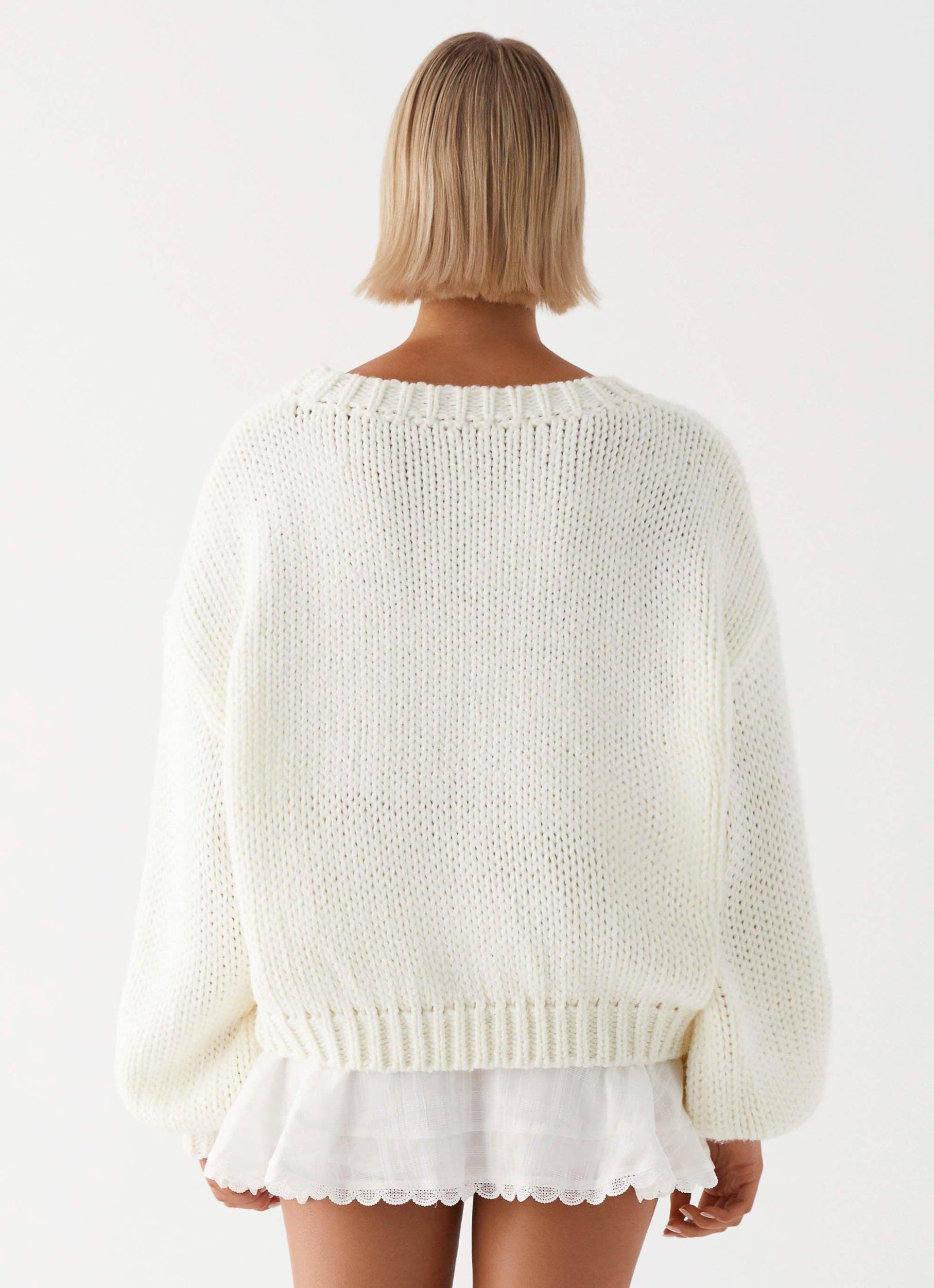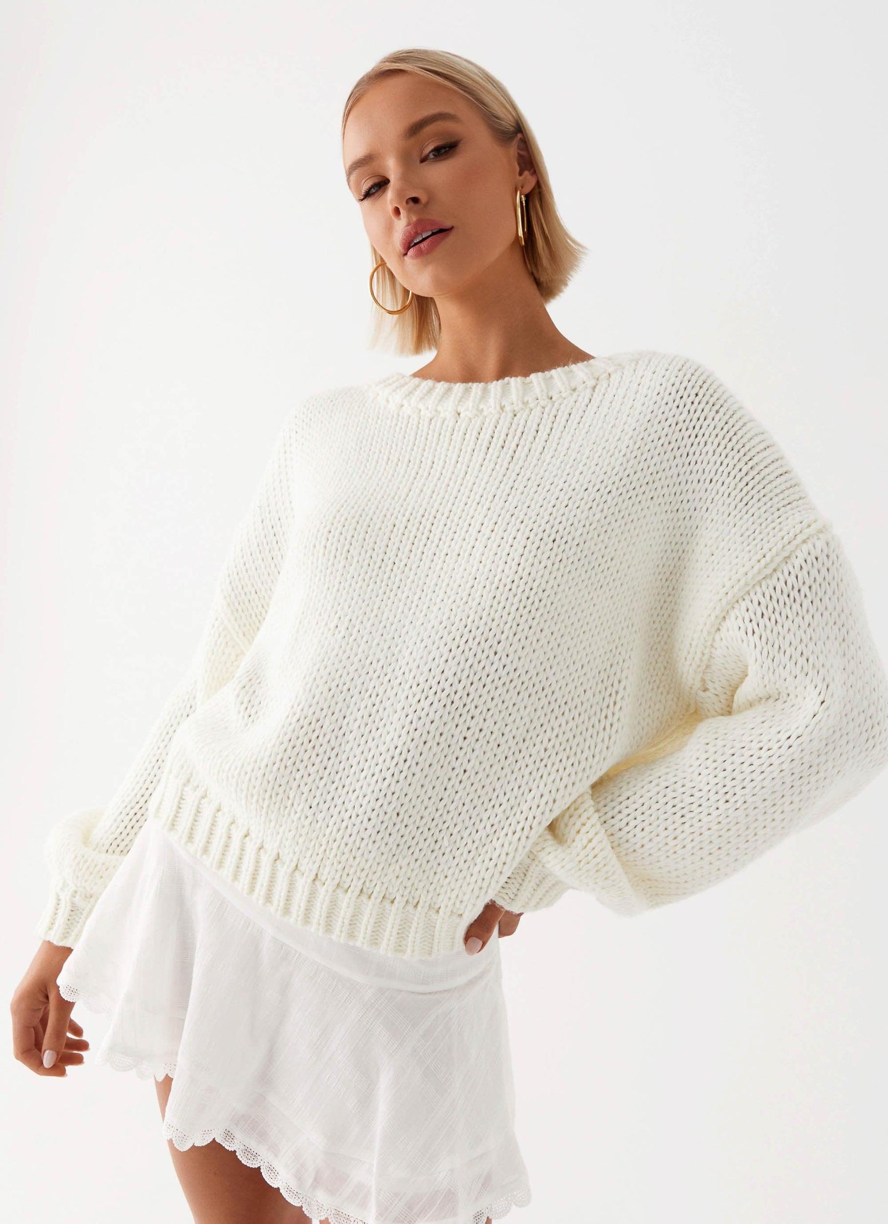 Peppermayo Exclusive Experience ultimate comfort with the Costella Knit Sweater, featuring a rounded neckline, oversized fit, and stylish balloon cuffs. Perfect for those evenings when the sky turns golden and you need something cozy to slip into. - Rounded neckline- Oversized fit- Chunky knit- Ribbed neckline, waistband, and cuffs- Balloon cuffs- Unlined- 100% Acrylic Size AU 8 / US 4 garment measurements: Shoulder: 140 cm / 55.1 inBust: 130 cm / 51.2 inWaist: 130 cm / 51.2 inSleeve length: 52 cm / 20.5 inLength: 59 cm / 23.2 in Annalise is 176cm and wearing a size AU 8 / and US 4