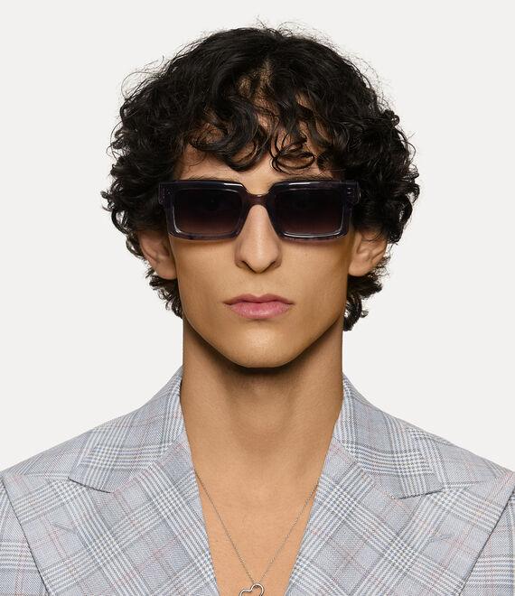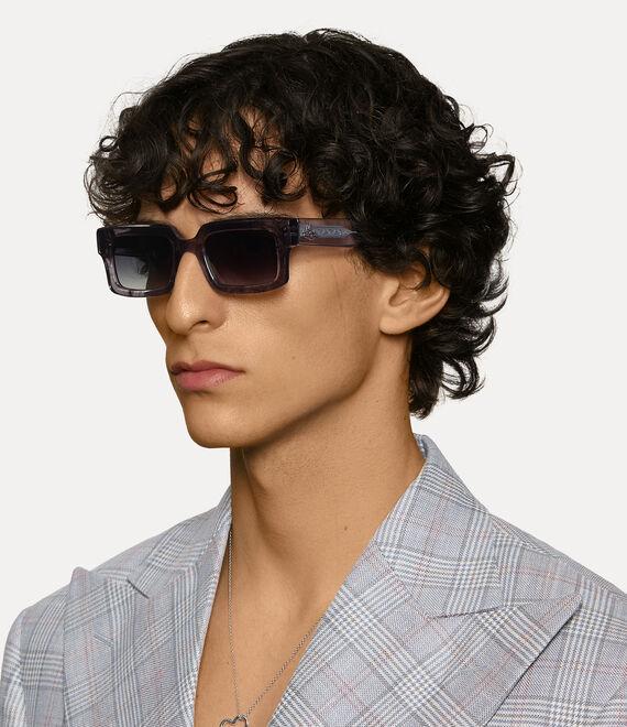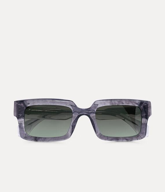 The Costello sunglasses are characterised by a bold and timeless aesthetic, inspired by the legendary cultural figures of stage and screen. Featuring square-shaped frames with graduating lenses, the design is finished in a grey marble-effect acetate, adorned with polished horn accents on the outer rim - a nod to Vivienne’s iconic Horn Alice band.