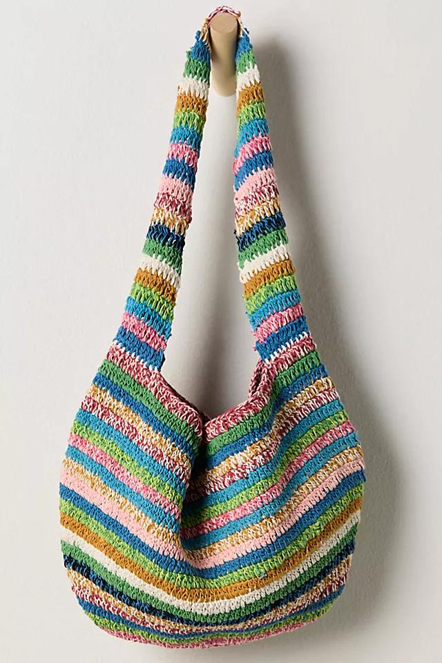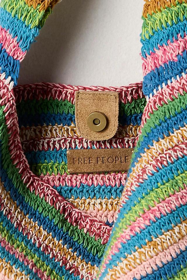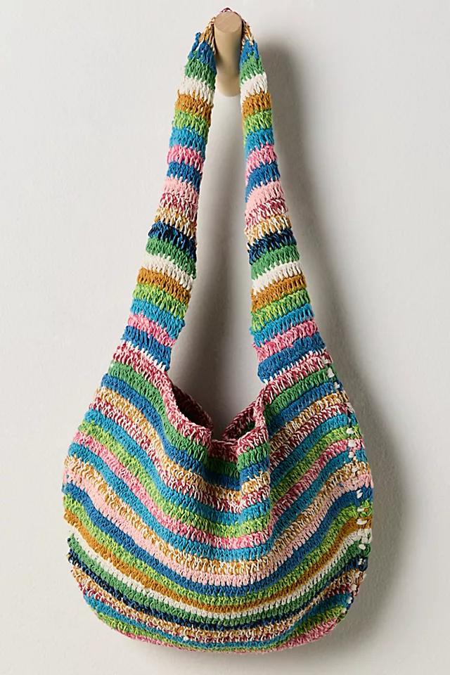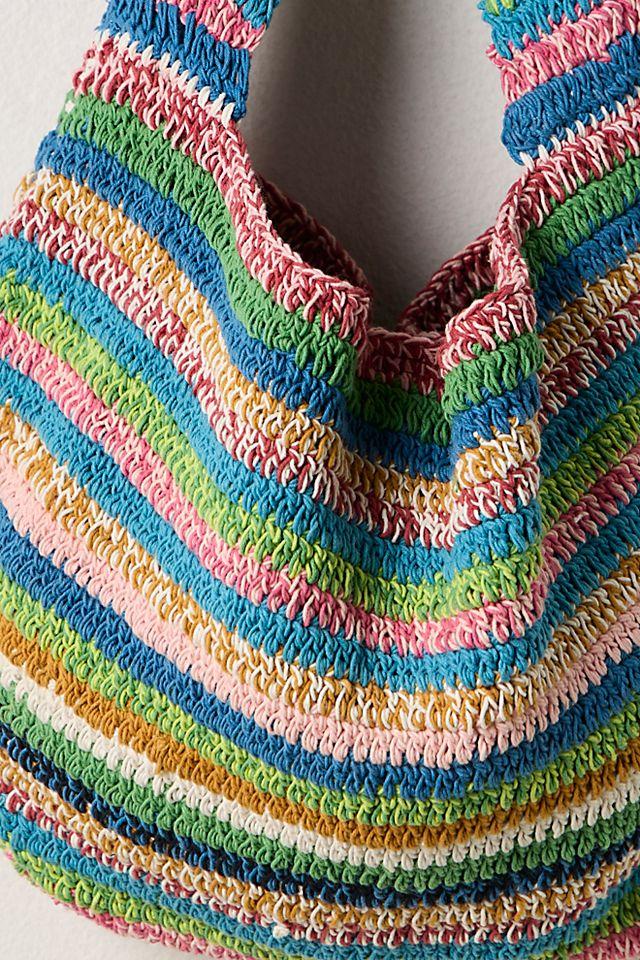 **Features:** Crochet fabrication, roomy style, slouchy silhouette, fixed shoulder straps
