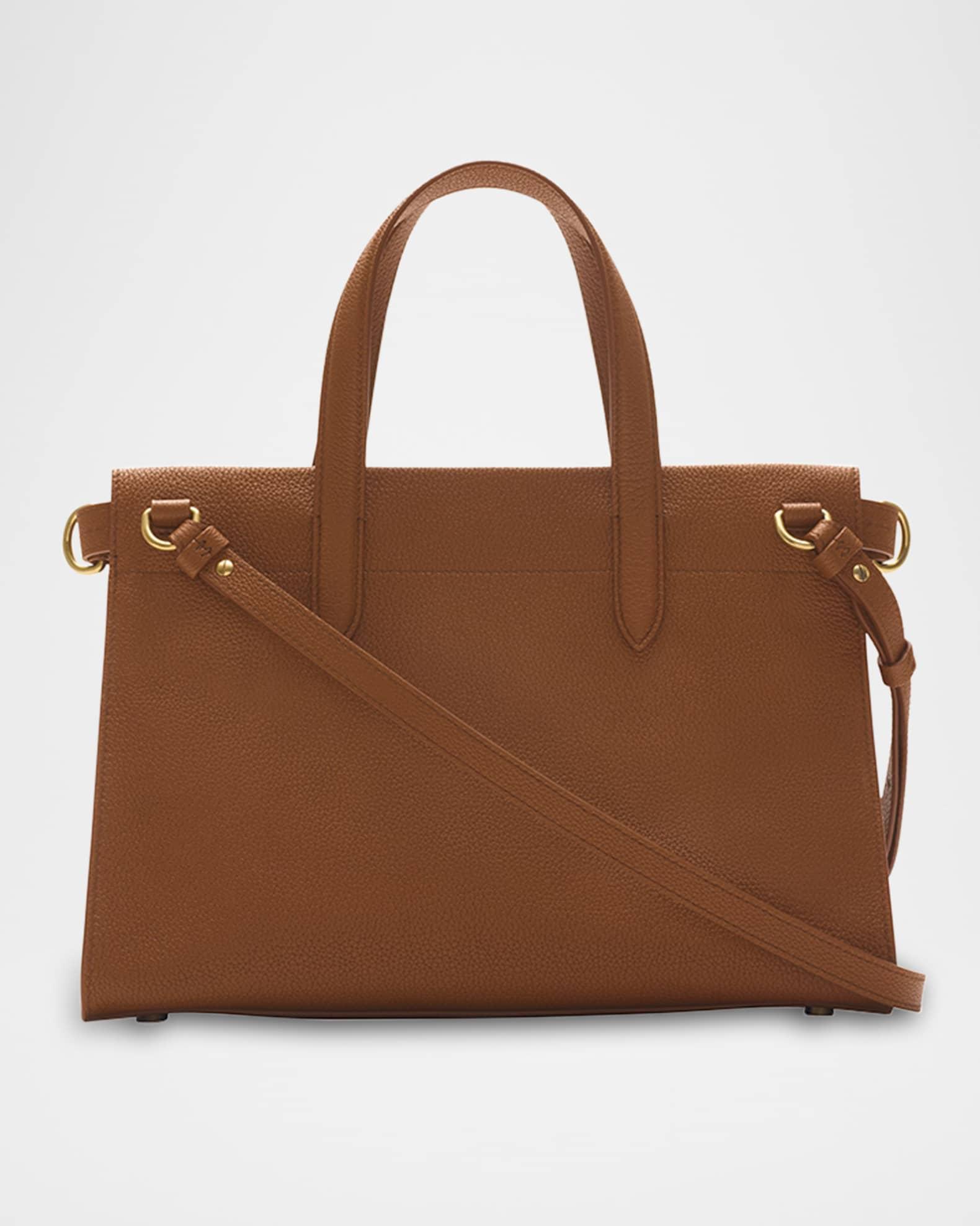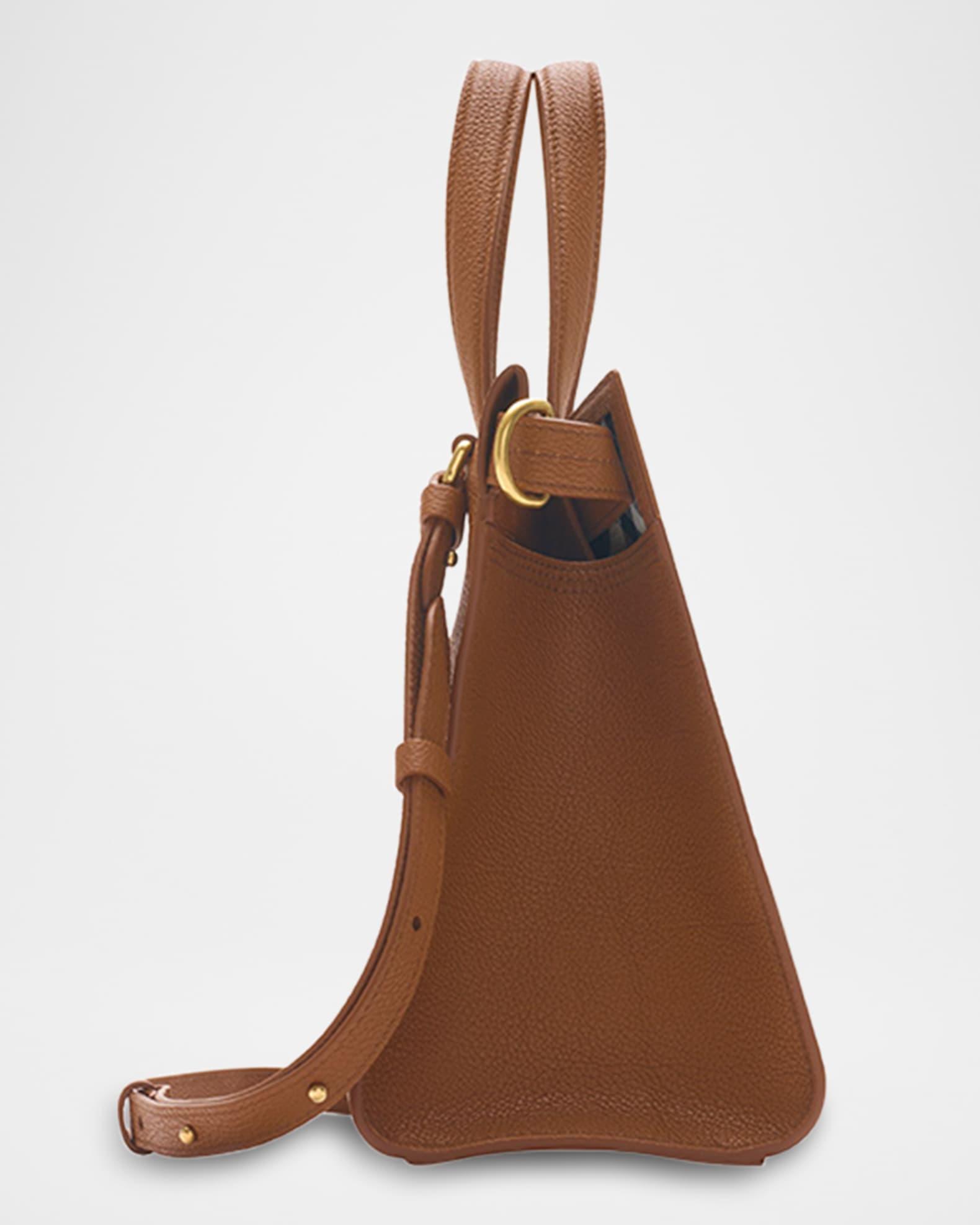 A timeless tote made in Italy from grainy calf leather, lined in a cotton blend woven with the Burberry check. The spacious design is detailed with a check-engraved closure and D-ring hardware inspired by the belt from their iconic trench coats. Carry in hand or as a shoulder bag using the strap. Burberry "Cotswolds" tote bag in grainy cal leather Top handles Detachable, adjustable shoulder strap Can be worn as top handle, shoulder, or crossbody bag Open top with twist-lock closure Side adjusters Interior, zip pocket Hand-painted edges Brushed metal hardware Embossed Burberry lettering at front Feet protect bottom of bag Comes with a dust bag Lining: Check cotton Approx. 8.9"H x 12"W x 5.1"D Made in Italy