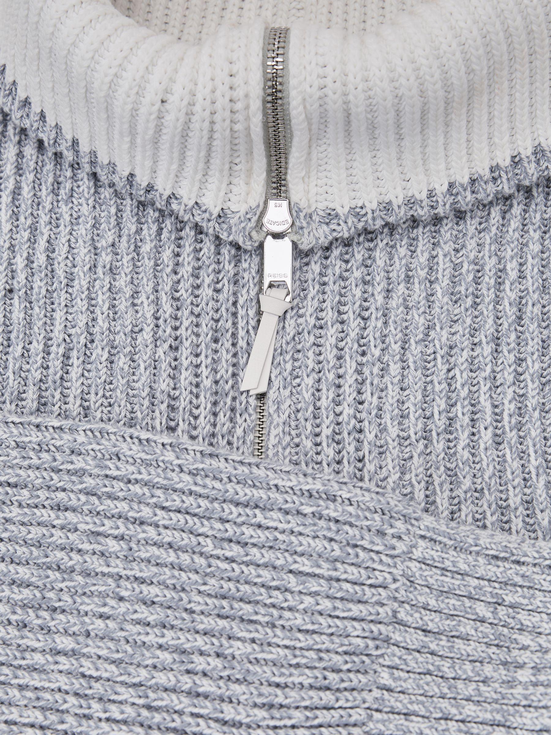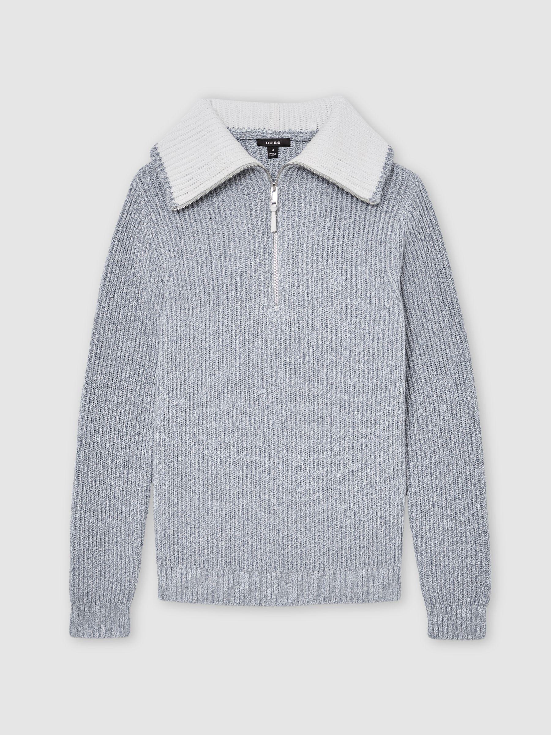 Cotton-Blend Rib-Knit Half-Zip Jumper in Soft Blue Twist