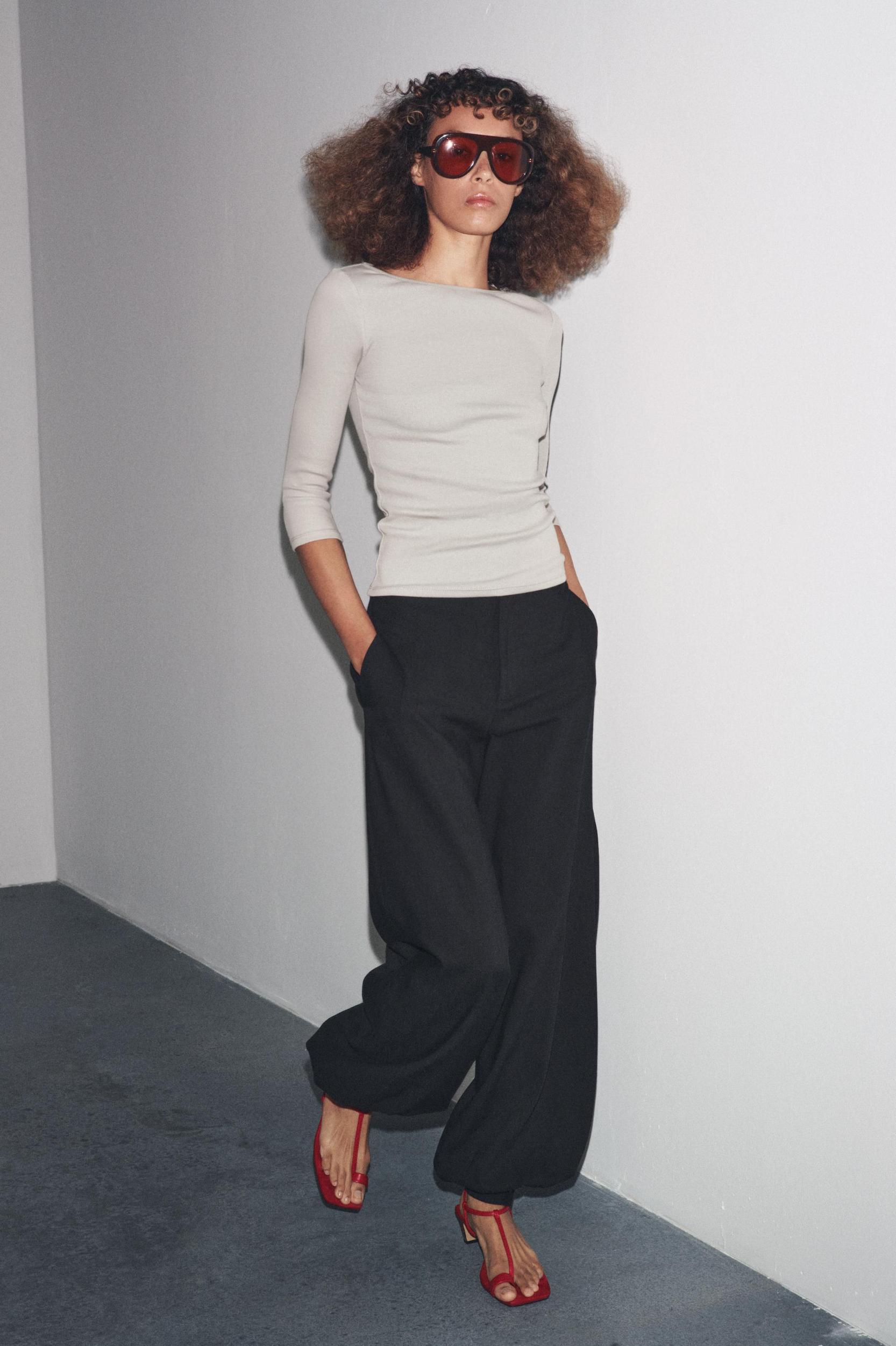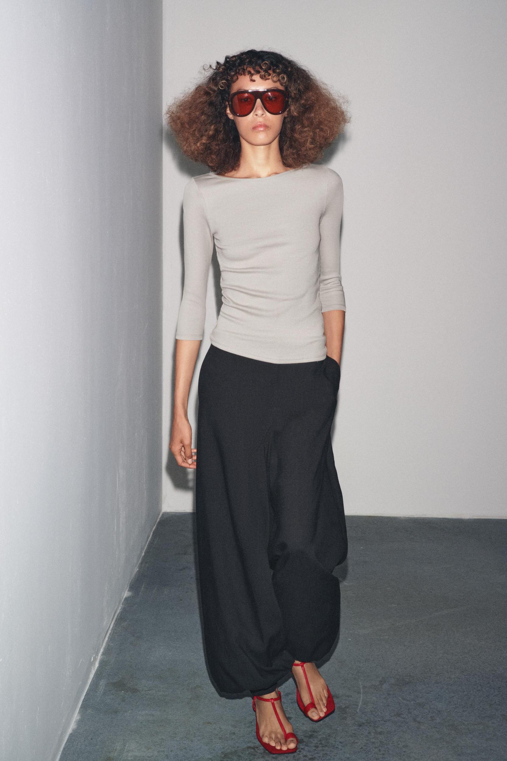 SLIM FIT - BOAT NECK - REGULAR LENGTH - THREE-QUARTER SLEEVES T-shirt made in cotton yarn. Boat neck and three-quarter sleeves. Rib knit fabric.