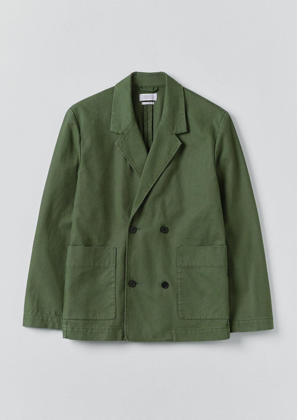 Our double breasted jacket is made from a sturdy cotton canvas and cut to a relaxed fit. Inspired by workwear styles. Finished with large patch pockets and horn buttons. Can be worn separately or as part of a suit with our Rory Pants. Part of our Menswear collection.