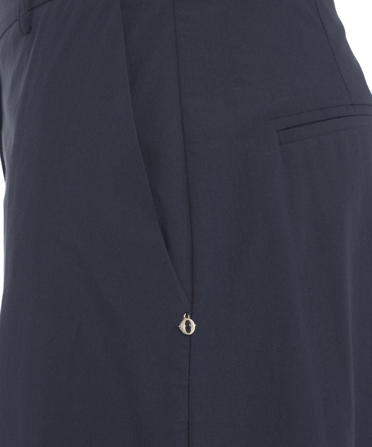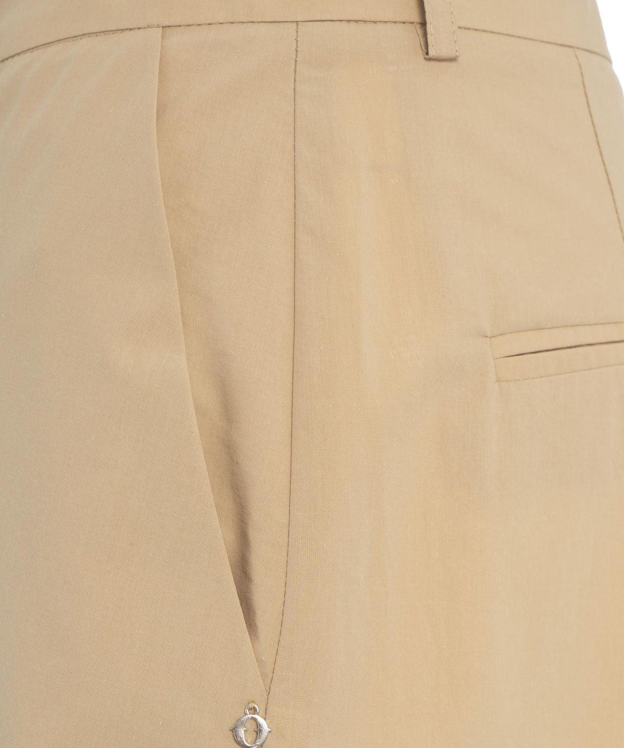 Belt loopsFront button and zip closureWide legCulotteFake welt pocketSlip pocketsLogo pendant