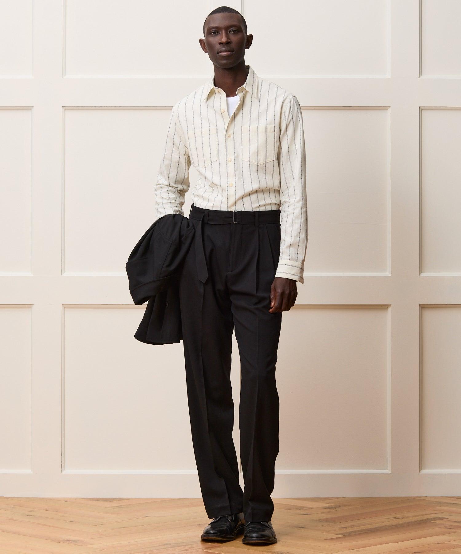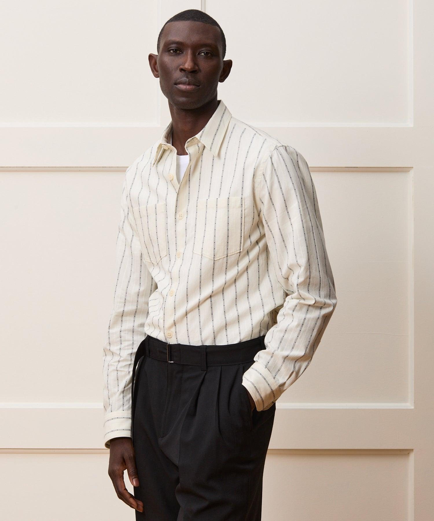 This Point Collar Shirt is as comfy as it is classic. It’s made from a lightweight, airy cotton with a vertical stripe. Point collars, by the way, are a bit more traditional than spread collars — and they’re actually the same length, but the points themselves are further apart in a spread collar. With a fit full enough for layering, this shirt is the perfect transitional piece — it’s made for escapes somewhere warm, worn all on its own or over a tee or tank, but it also works layered beneath a sweater or chore coat in cooler weather. 100% Cotton Corozo Buttons Slim Fit Point Collar Button-Through Chest Pockets Side Gussets Button Cuffs Locker Loop at Back Made in India Machine wash cold with like colors. Non-chlorine bleach only. Tumble dry low, cool iron as needed. Style SH18410185