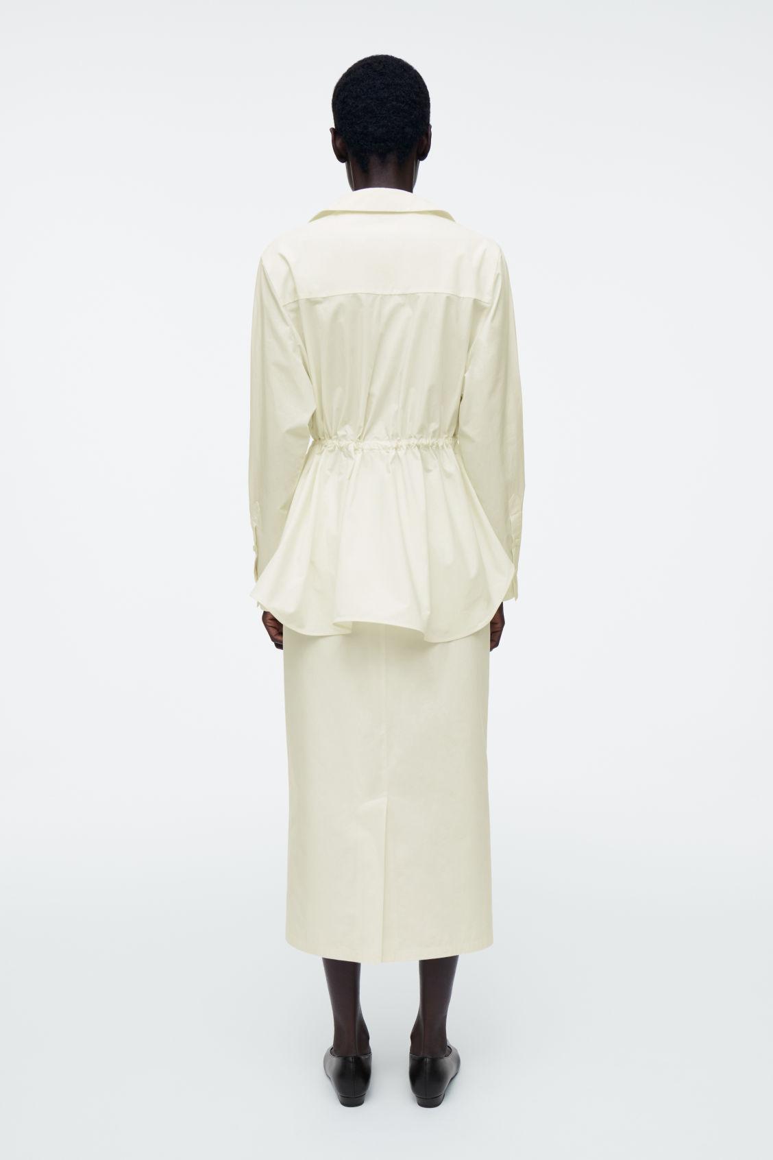 A modernized classic, this midi skirt is cut in a straight silhouette and rendered in a soft buttermilk tone. It's crafted from pure lightweight cotton and features an internal drawstring tie and an elasticated waistband. Style it with sandals or sneakers. Regular fit Shell & lining: 100% Cotton. Excluding trims / Machine wash Back length of size 6 is 30.31" / Model wears a size 6