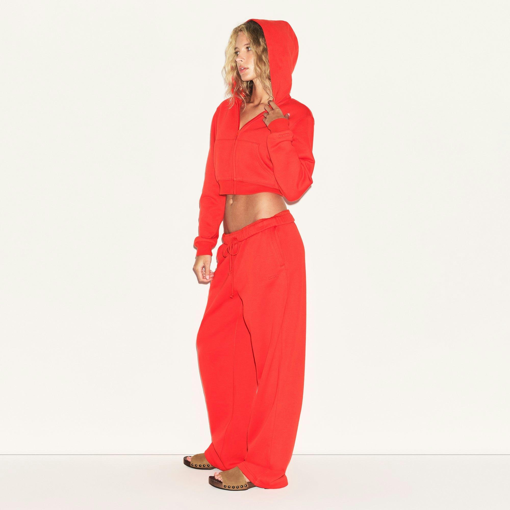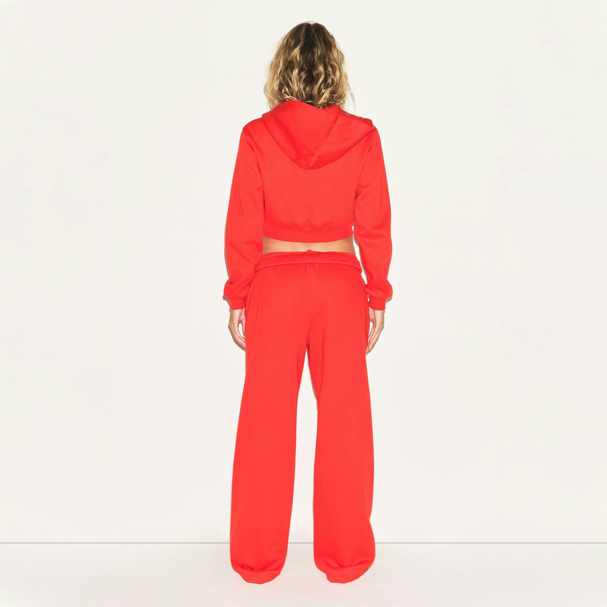 COTTON FLEECE CROPPED ZIP UP HOODIE | RUBY