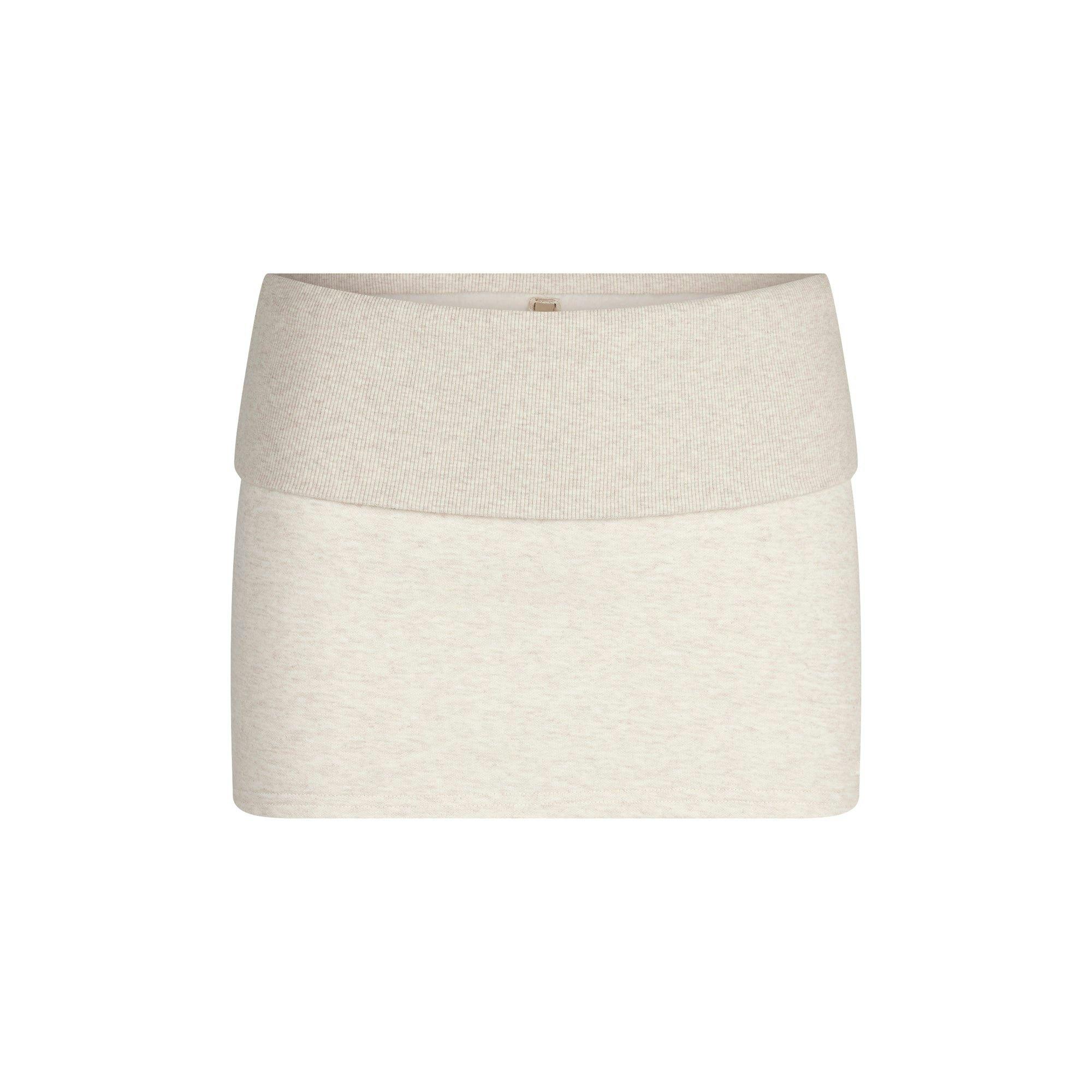 COTTON FLEECE FOLDOVER MINI SKIRT | OATMEAL HEATHER