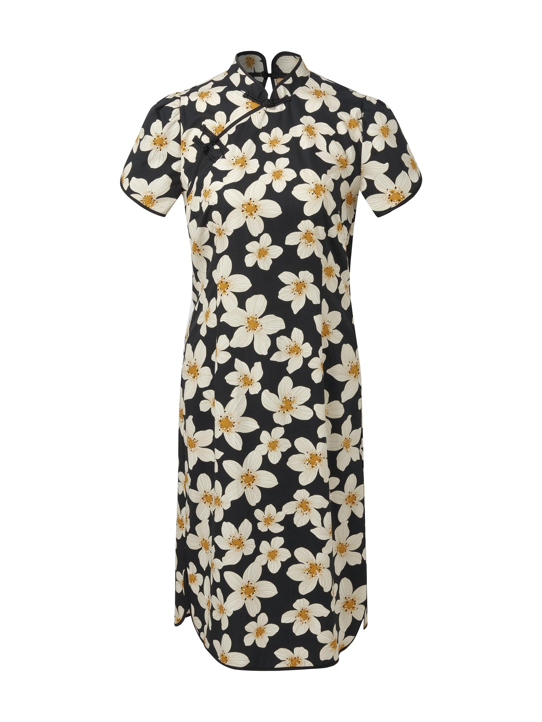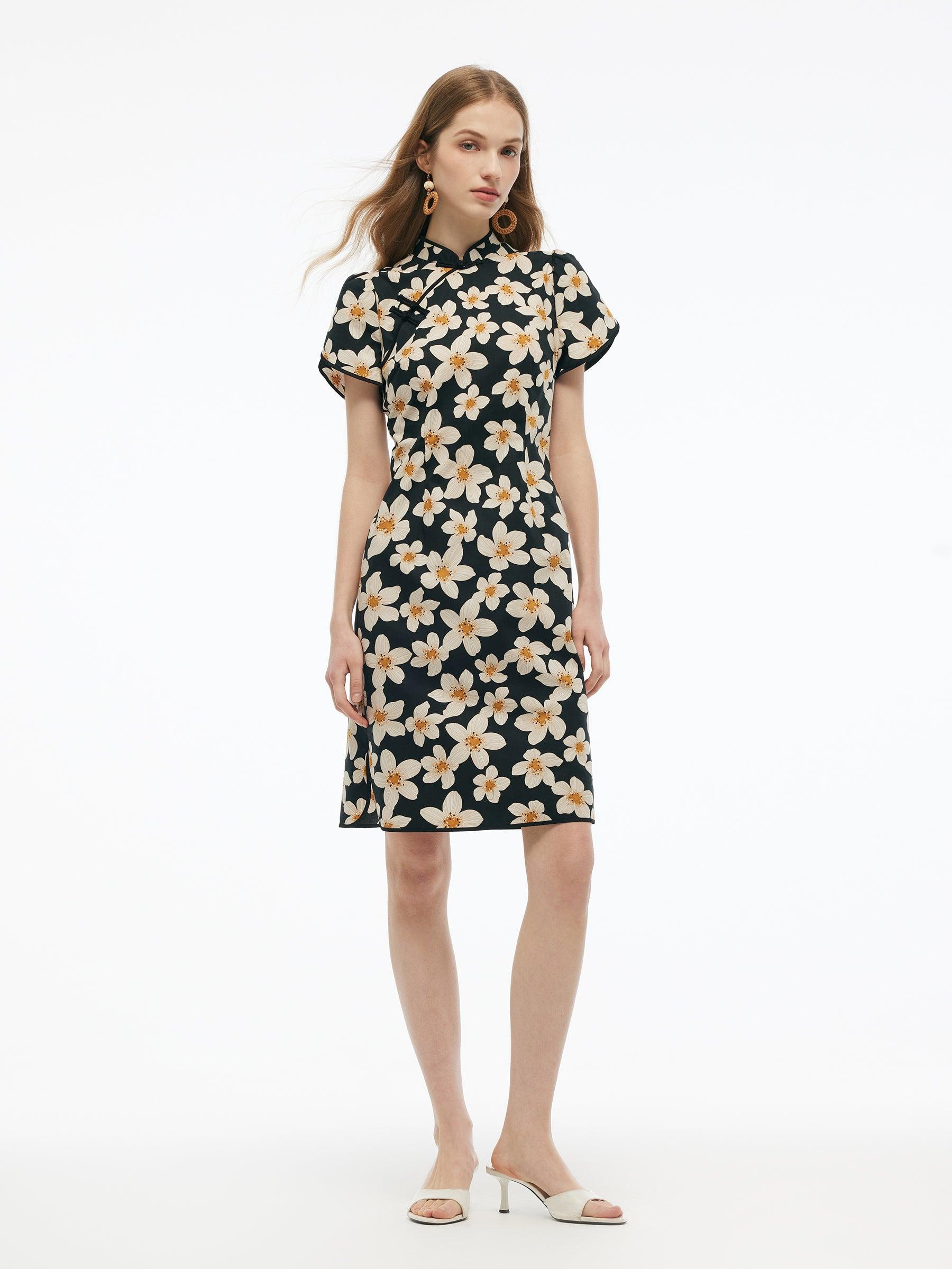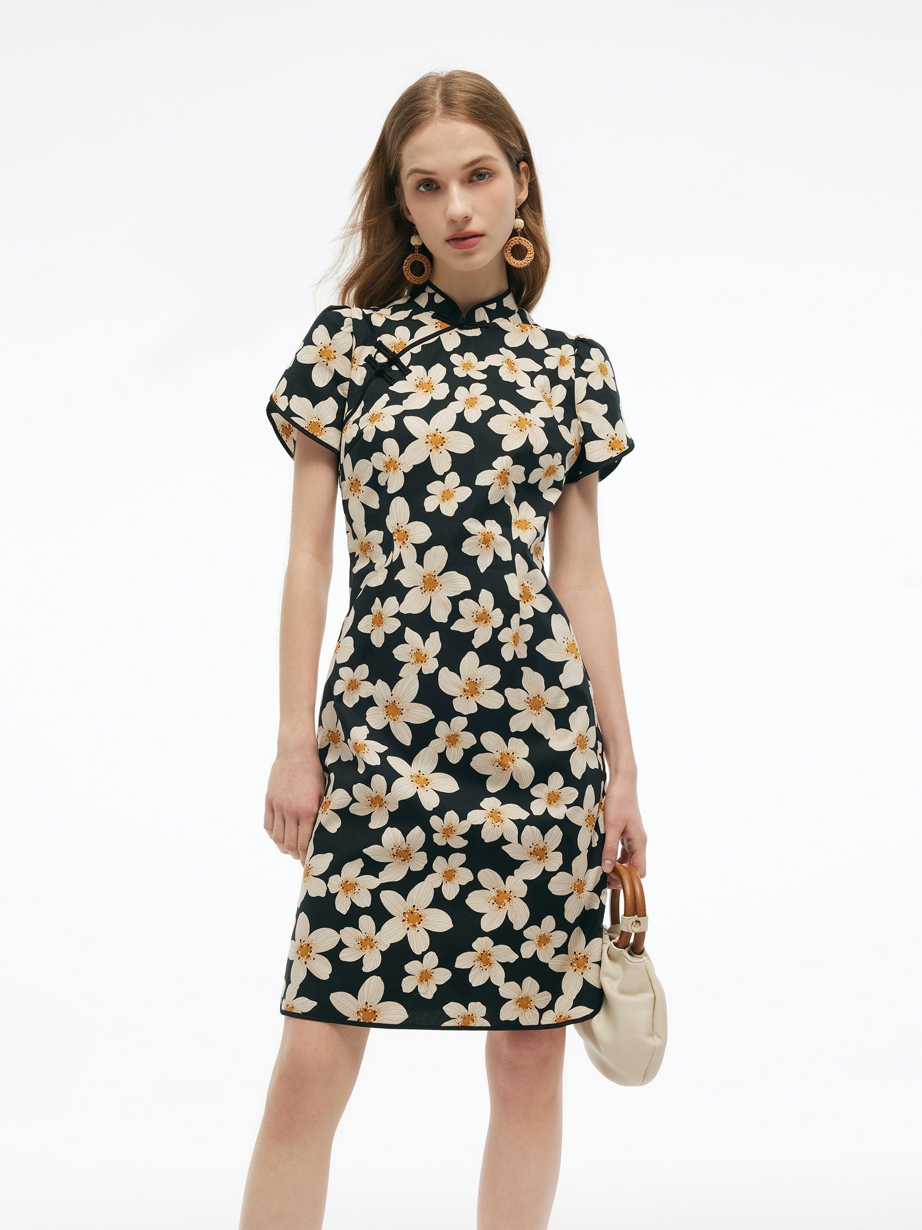 -Cotton stretchy fabric -New Chinese-style -Slim fit A modern showcase on oriental qipao dresses. Made from high-quality cotton, this qipao dress ensures all-day comfort and breathability. The elegant Mandarin collar and traditional Chinese knots add a subtle sophistication, while the slim fit silhouette flatters every