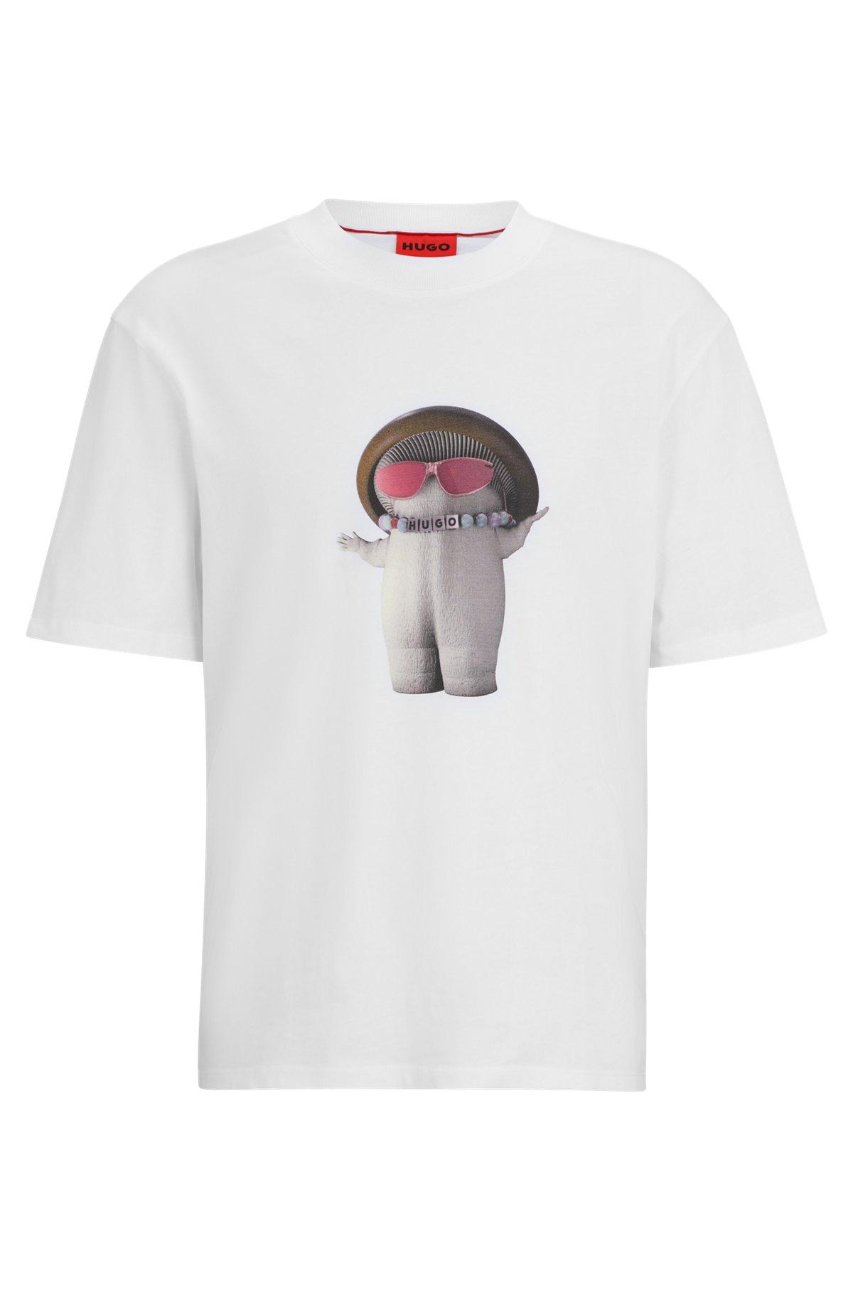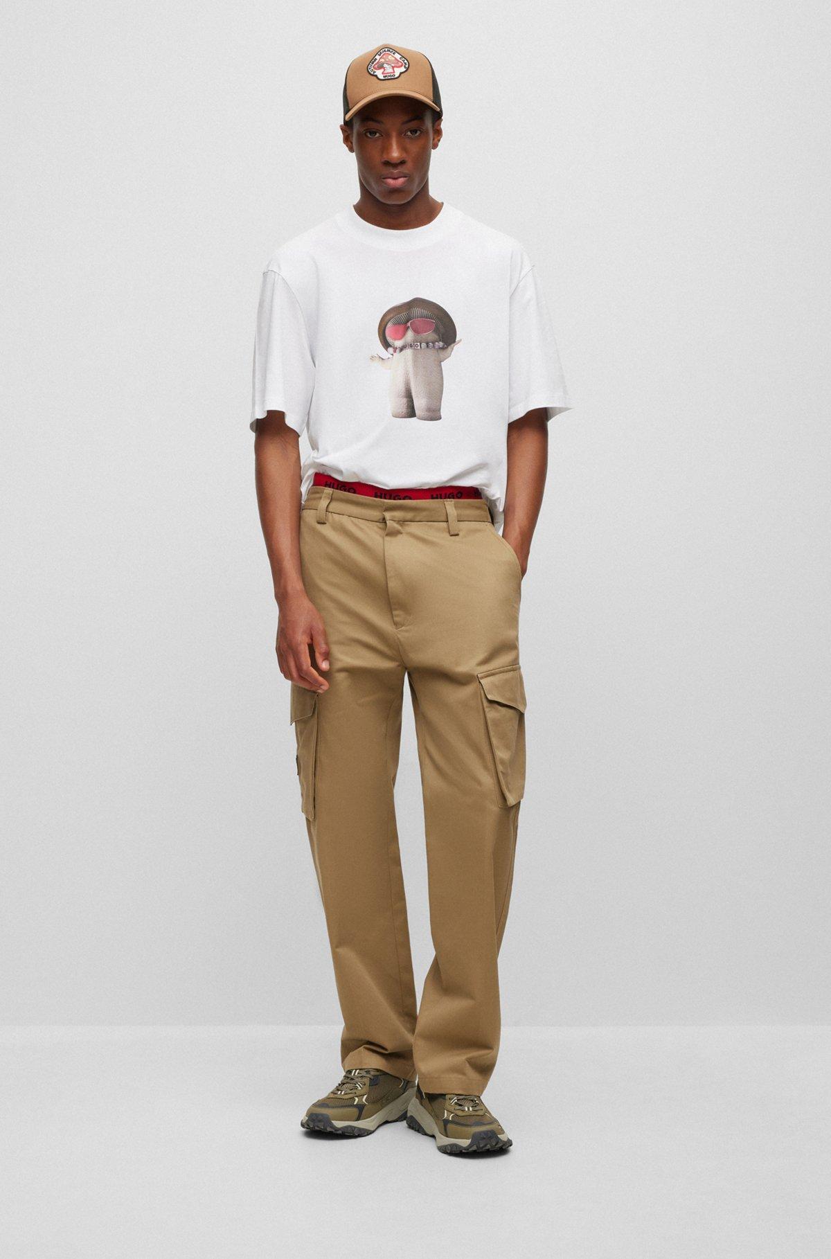 A relaxed-fit T-shirt in soft jersey with mushroom prints and branding by HUGO Menswear.