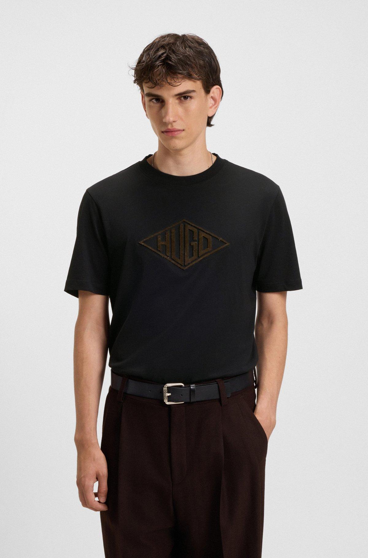 With its creatively embroidered 3D logo, this regular-fit HUGO Menswear T-shirt adds character to a casual look. Made in breathable cotton jersey for everyday comfort.