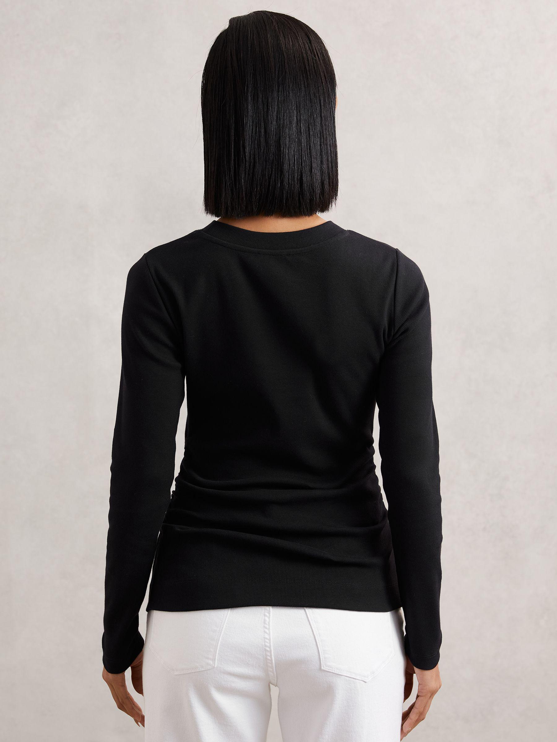 Side ruching creates soft ripples throughout the long-sleeved Tessa T-Shirt. It’s crafted from finely ribbed cotton with a touch of stretch, offering a close, comfortable fit. Cotton with stretch. Fine ribbing. Side ruching. Crew neckline. Long sleeves.