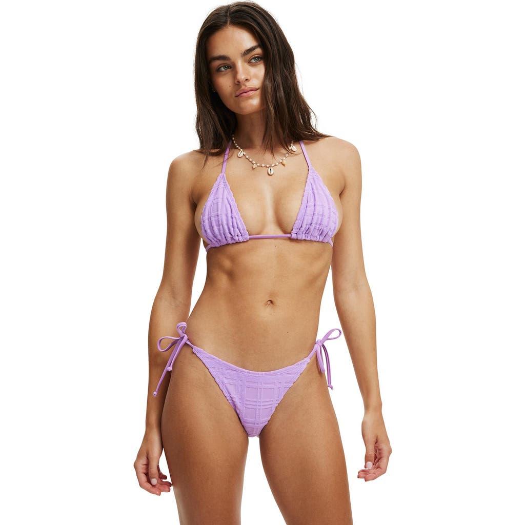We’re all about things that feel good. The sun on your skin, sand between your toes, and giving old materials new life. So, why not look good while doing good in our recycled swimwear range. Made with recycled polyester. Adjustable tie sides Brazilian style coverage This product is fully lined This product has been made with recycled fibres Rinse immediately after use Cold gentle machine wash Do not bleach Do not tumble dry Do not iron Do not dry clean