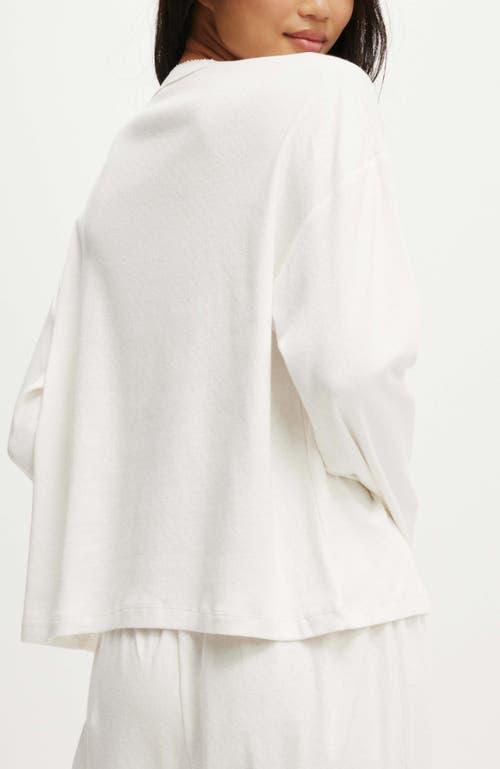 Nothing says 'best sleep ever' like the Pointelle Long Sleeve Top. With it's dreamy soft fabric and comfy, oversized fit, it's as cute as it is comfortable. Oversized fit Set in sleeve Soft fabric Wash With Like Colours Inside Out Cold Gentle Machine Wash Do Not Bleach Do Not Tumble Dry Cool Iron Inside Out If Required Do Not Dry Clean