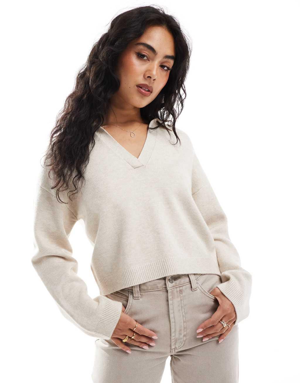 Hoodies & Sweatshirts by Cotton:On Embrace your softer side Polo collar V-neck Long sleeves Regular fit