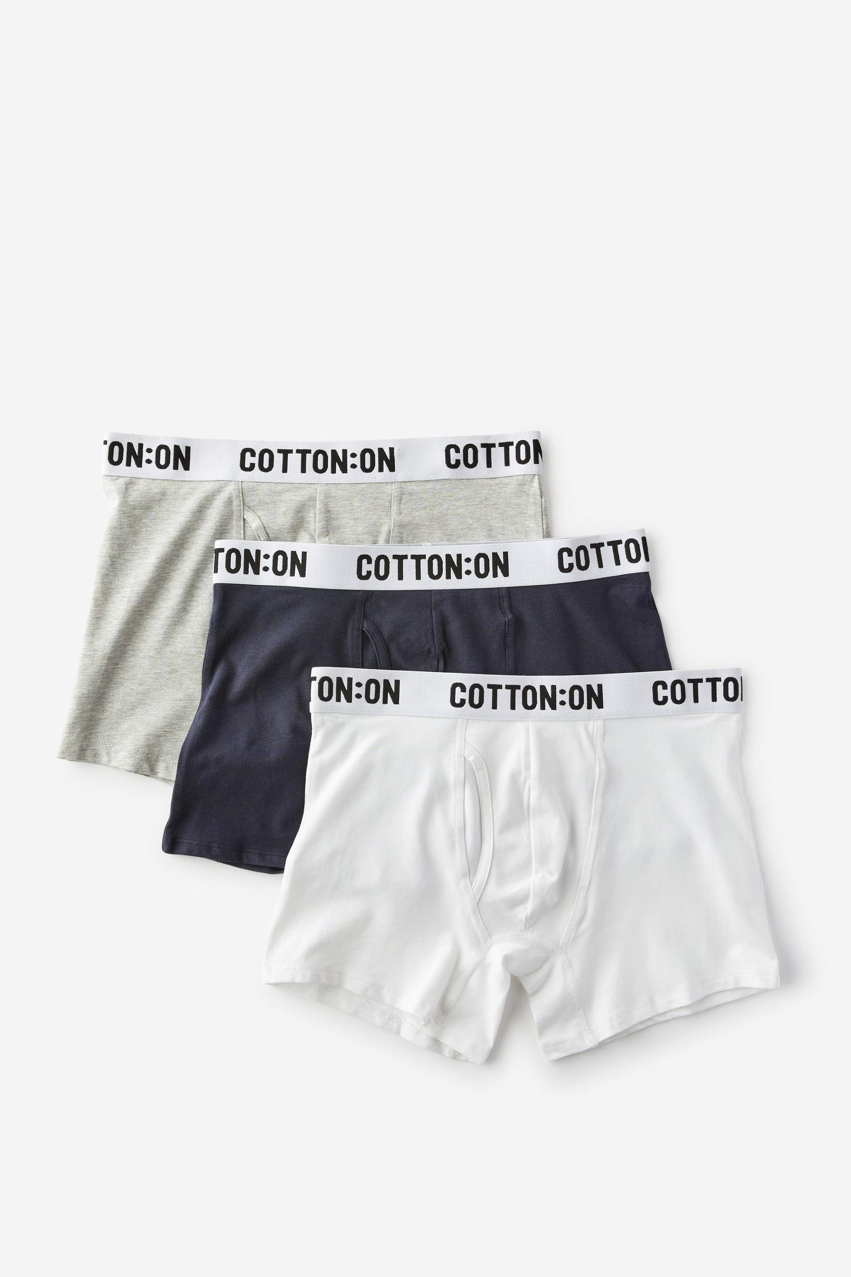 Cotton On Men - Mens Organic Cotton Trunks- 3 Pack - Light grey marle/navy/white