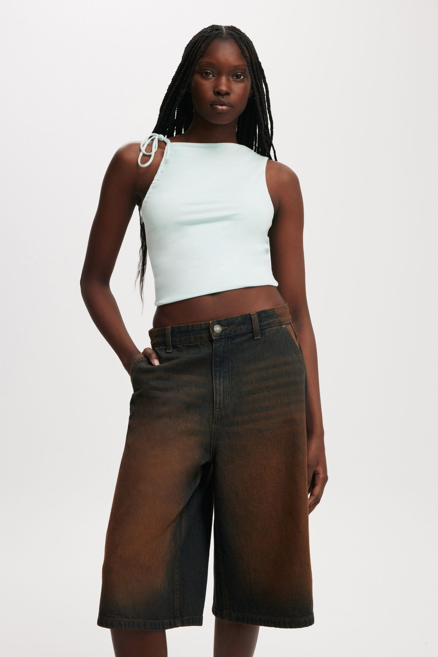 Cotton On Women - 91 Baggy Denim Jort - Carpenter y2k washed brown