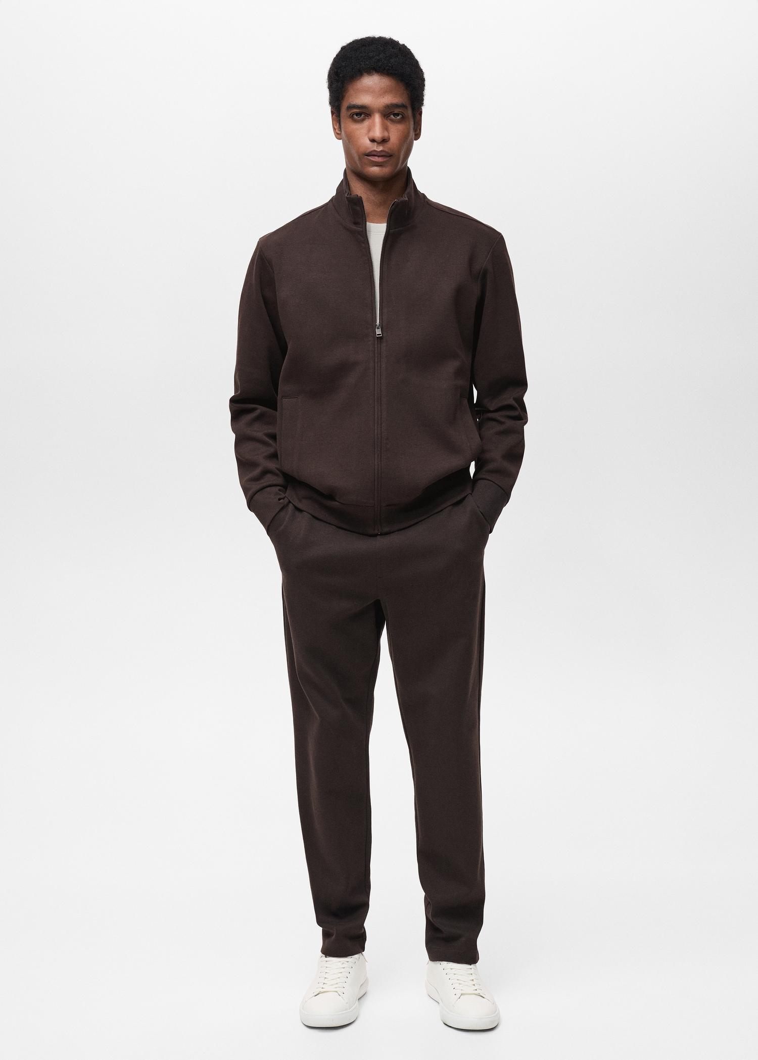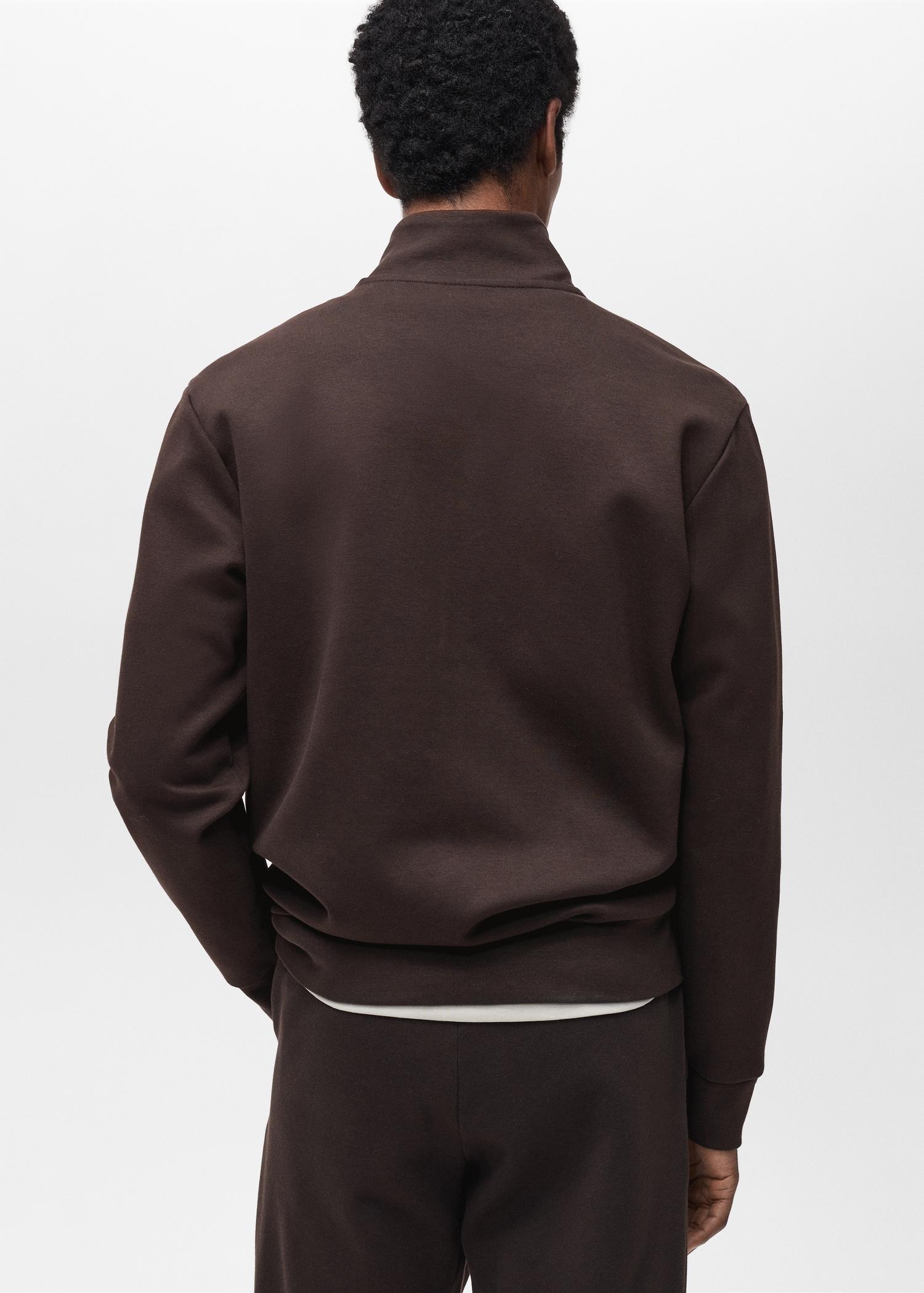 ESSENTIALS: Made to last. The brown color is an online exclusive. 88% cotton fabric. Regular fit. Perkins collar. Zipper closure. Long sleeve with elastic cuffs. Two side pockets. Elastic hem. The model is 190 cm tall and wears a size M. Back length 28.94 in