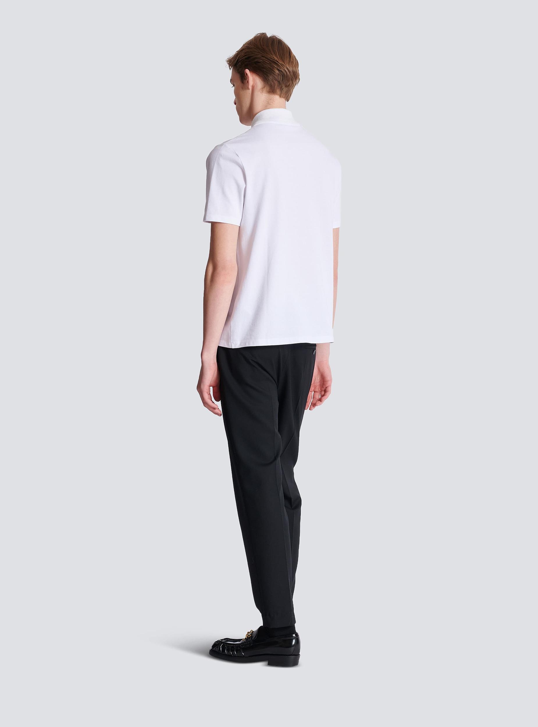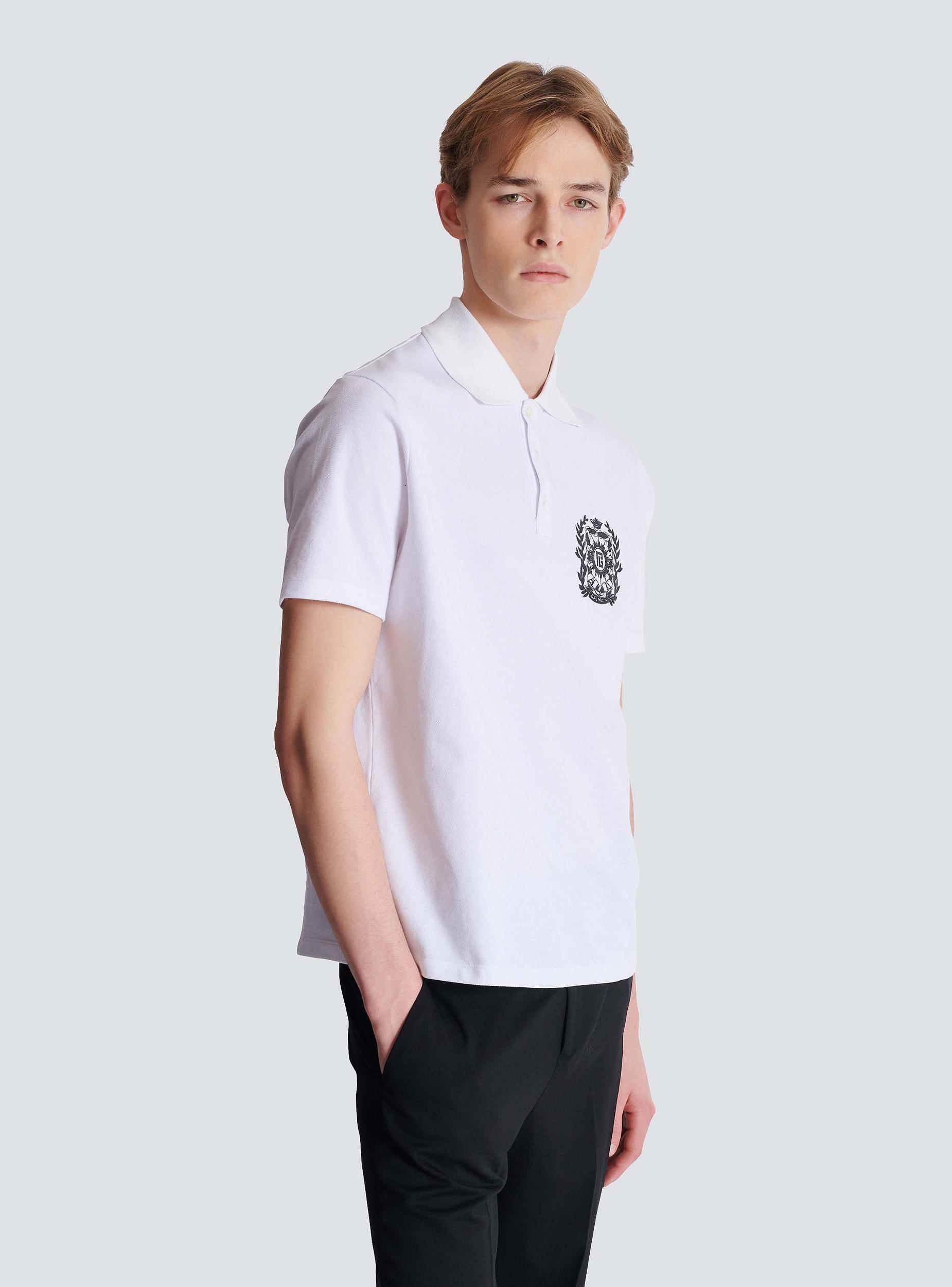 Cotton piqué polo shirt with Écusson printRibbed polo collarFastening with 3 Balmain-engraved buttonsShort sleevesContrasting raised Balmain Écusson print on the chestRegular fitModel measures 190cm and wears a size MMain material: 100% cottonMade in ItalyItem: FH1GC035GE96
