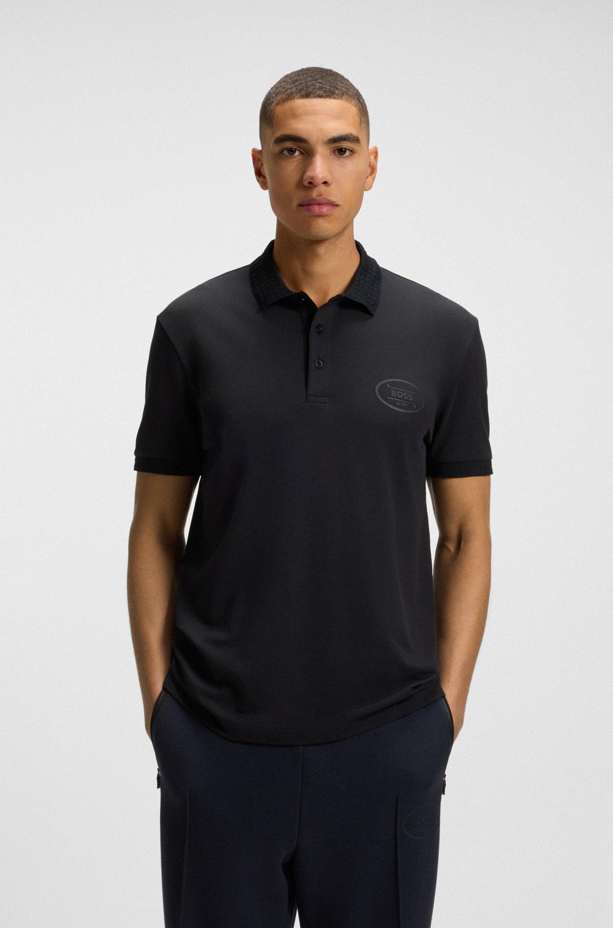 Cotton polo shirt with herringbone structure