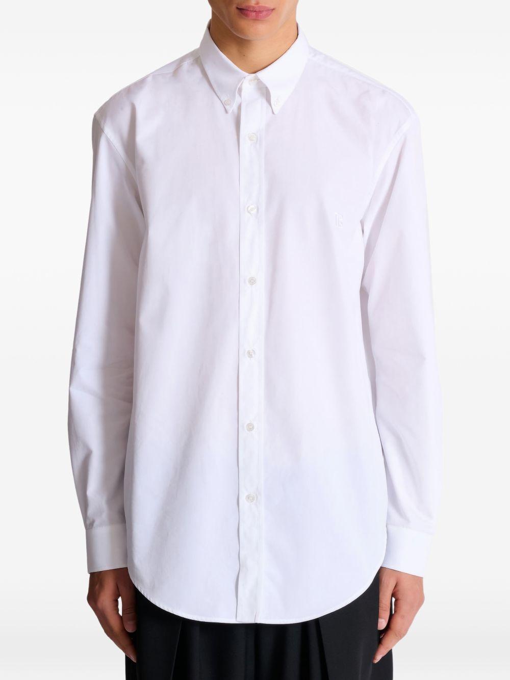 Balmain cotton poplin shirt | White | white | front button fastening | button-down collar | long sleeves | chest logo detail | Cotton | Shirts | Clothing | Men