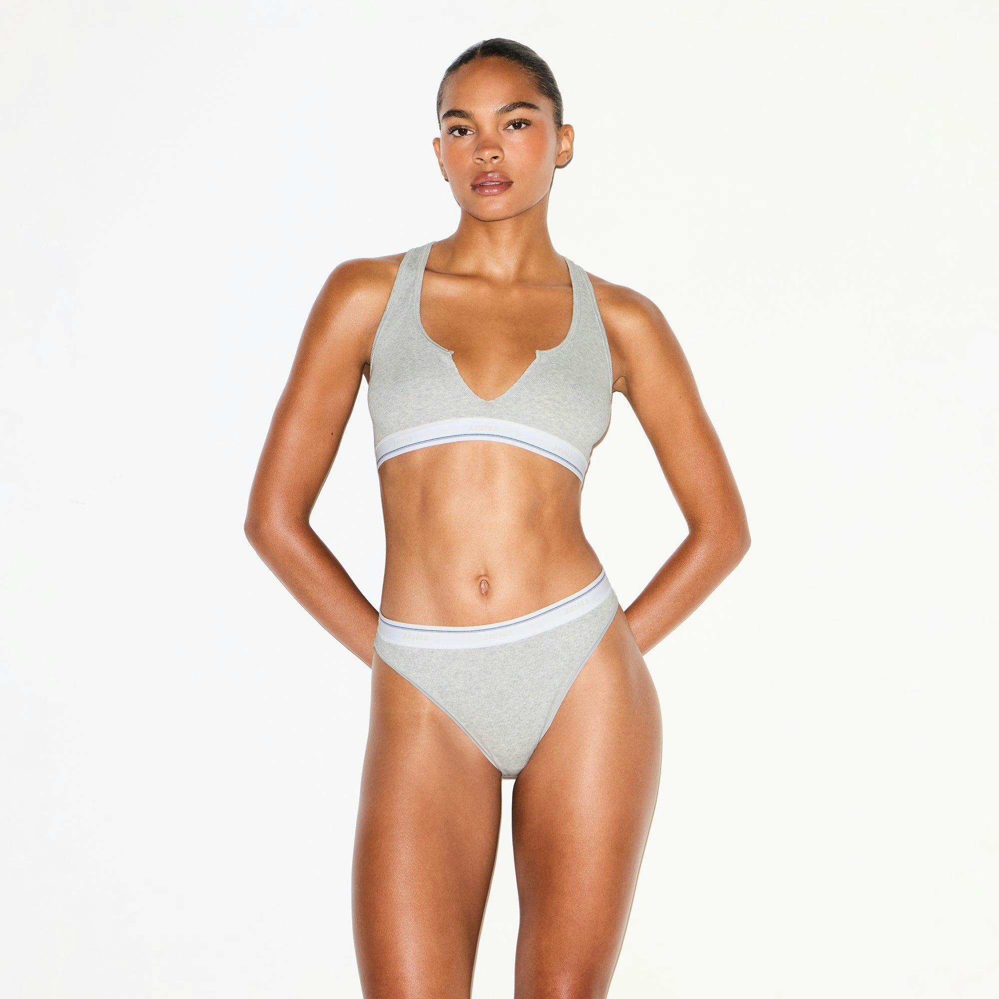 COTTON RIB SPLIT NECK BRALETTE | LIGHT HEATHER GREY STRIPE