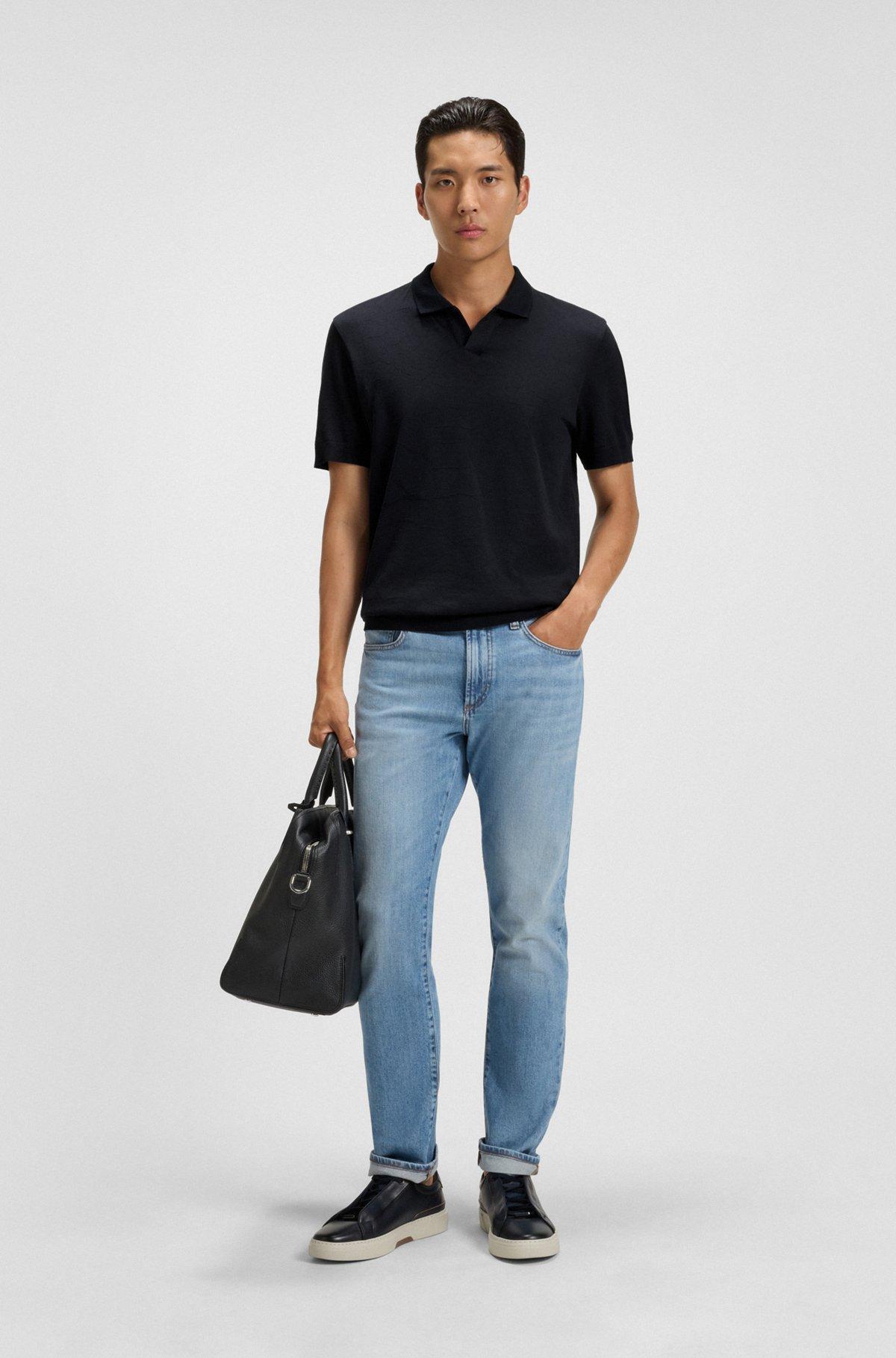Cotton-silk polo shirt with Johnny collar