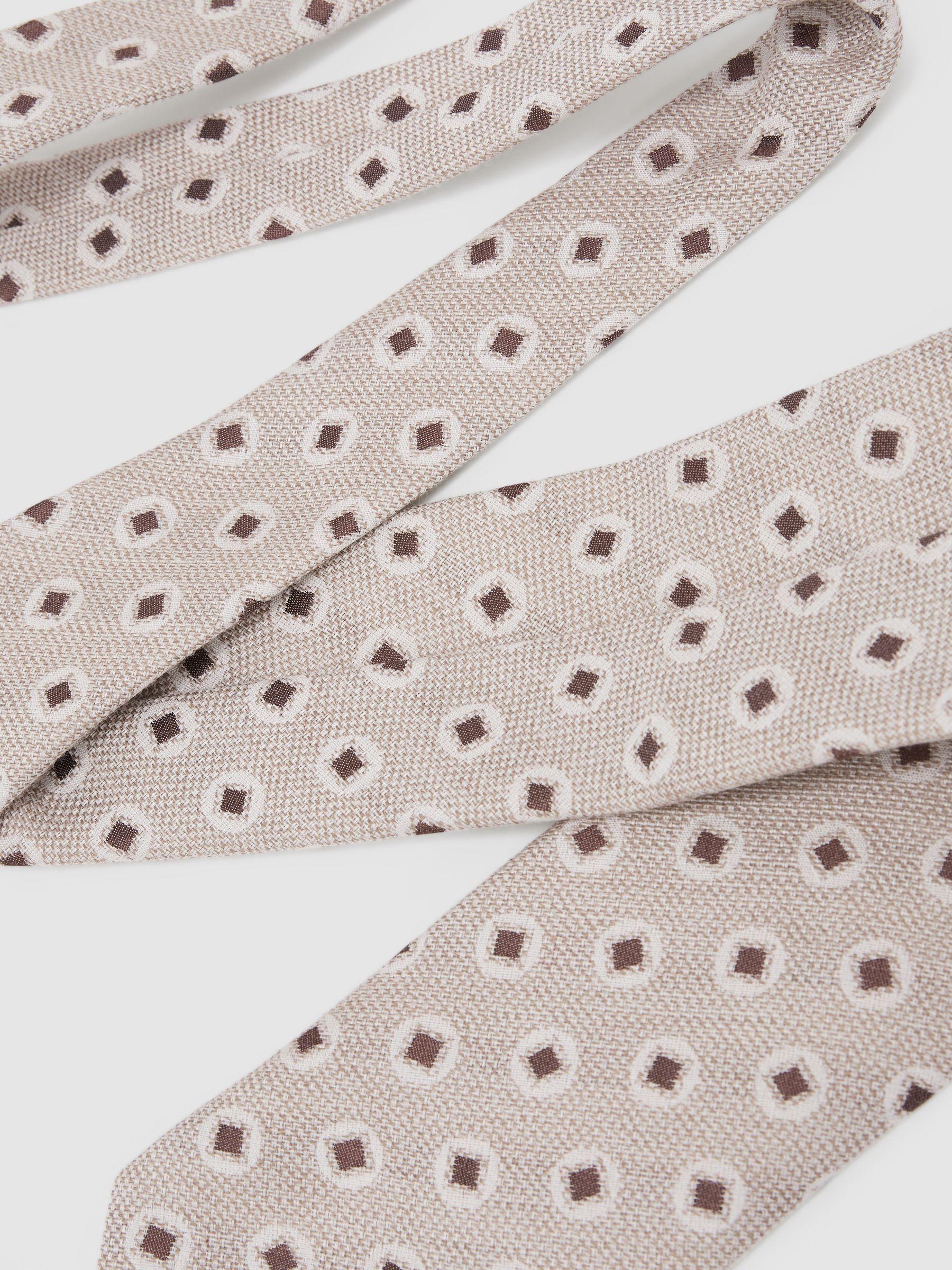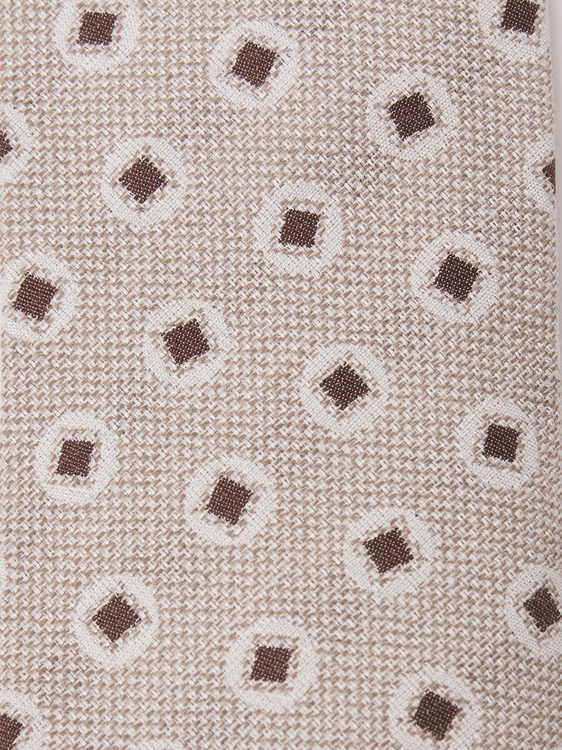 Cotton-Silk Square Medallion-Print Tie in Oatmeal / Chocolate Brown