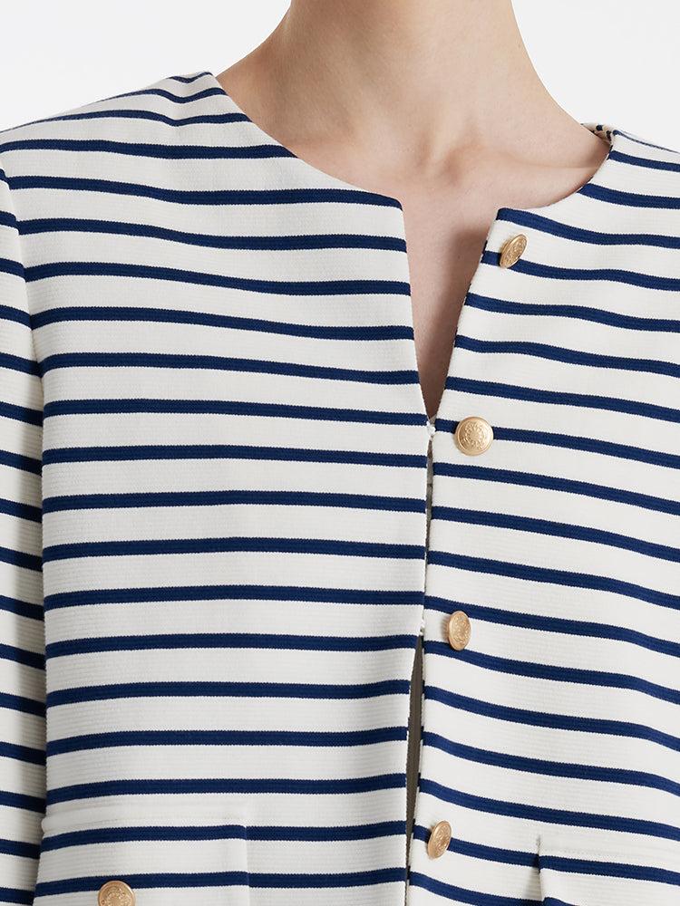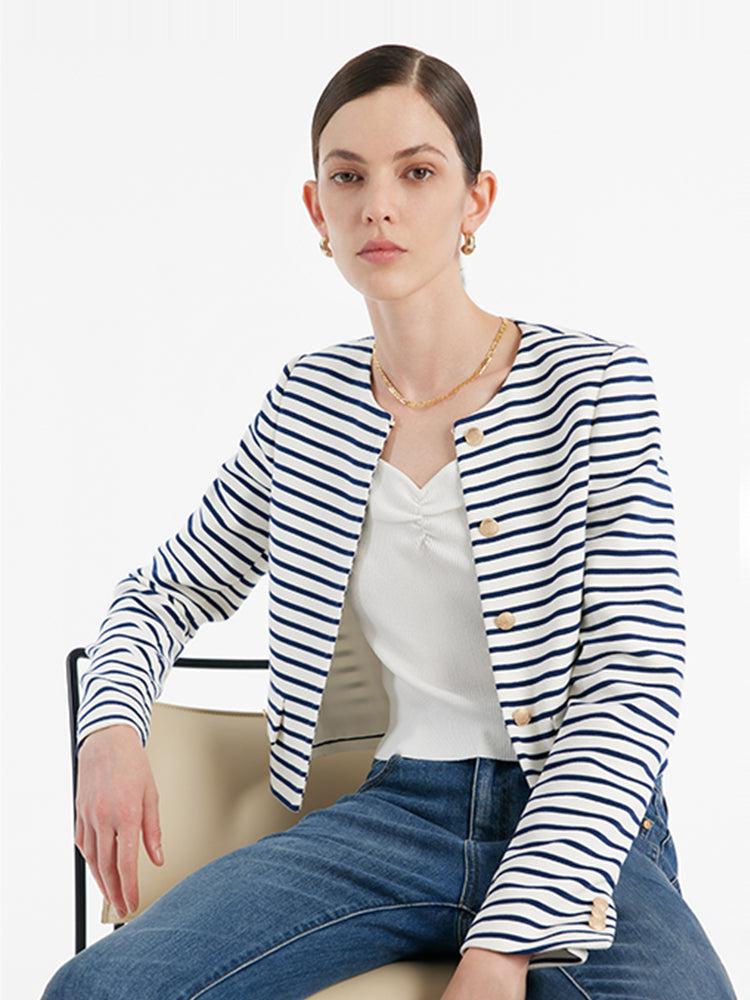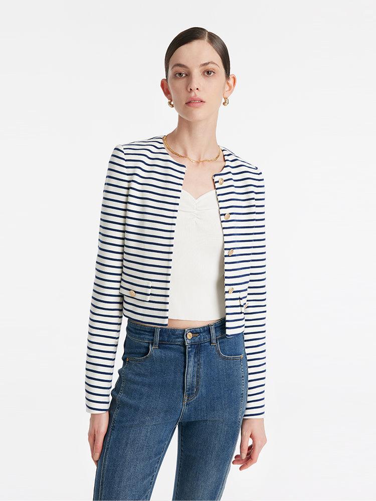 -Cotton fabric -H-line fit -Casual wear The jacket is made from cotton fabric. It is not only breathable but also ensures a comfortable fit that's ideal for transitioning between seasons. The cropped design of this jacket adds a modern flair, perfect for pairing with high-waisted skirts or jeans to create a figure-flat