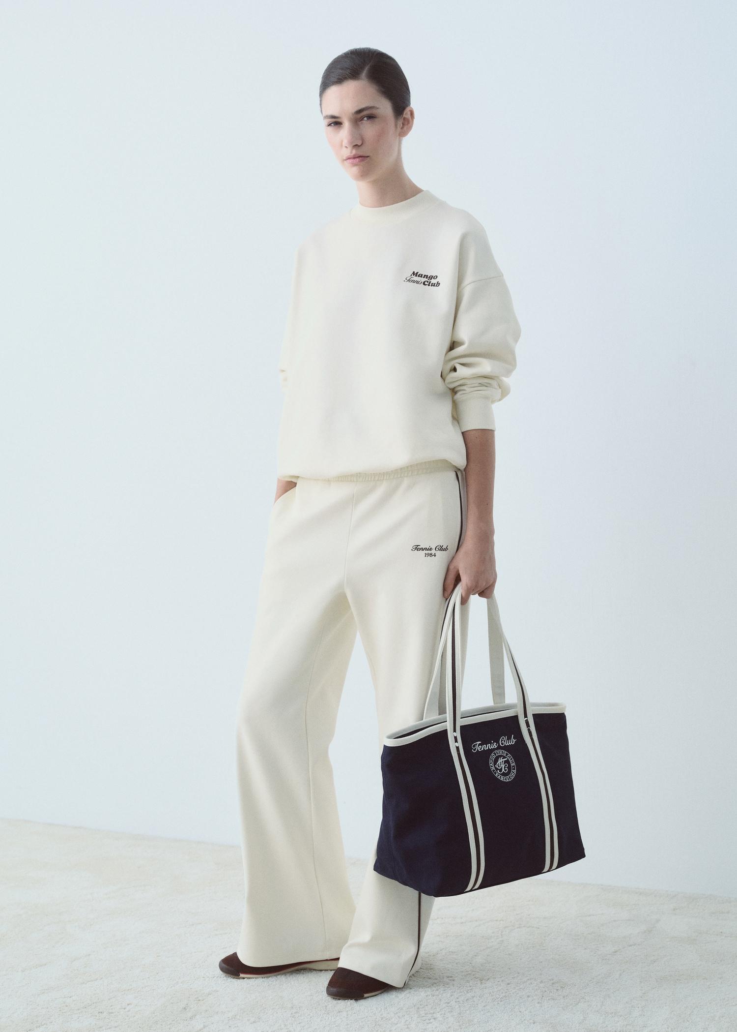 Cotton fabric. Straight design. Round neckline. Long sleeves with elastic cuffs. Online Exclusive. Side length 13.39 in. Back length 26.57 in. As a tribute to one of the most social sports, and to celebrate our sponsorship of the Barcelona Open Banc Sabadell 72nd Conde de Godó Trophy, we are launching a collection of selected garments that represent the most sophisticated side of tennis with retro details