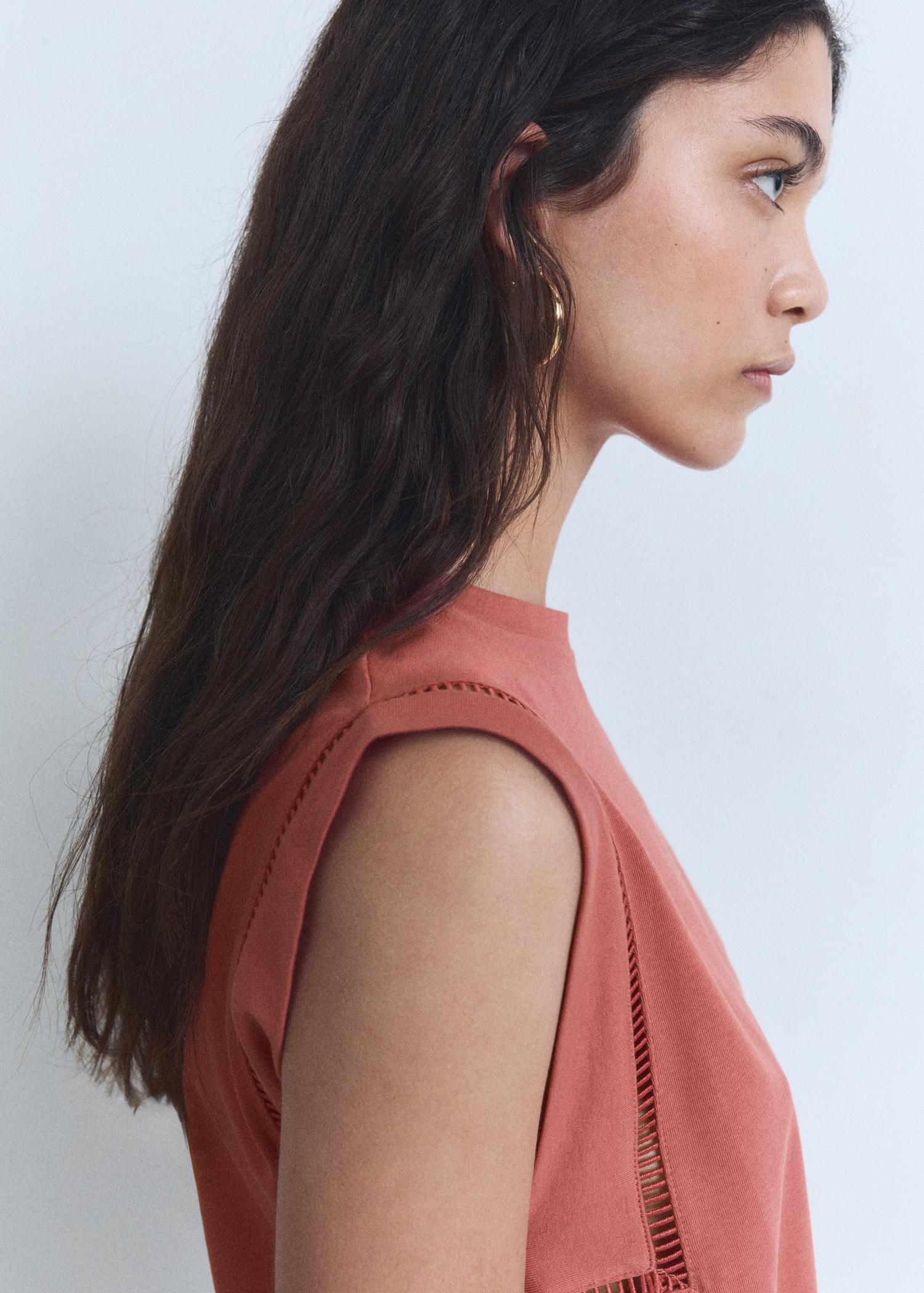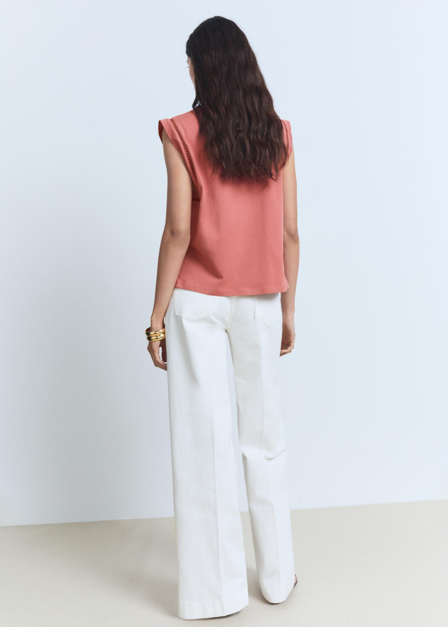 Cotton t-shirt with openwork trim - Women | MANGO USA
