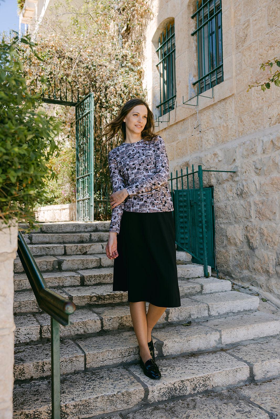 Meet your new favorite top: A beautiful hand-painted print in earthy neutral tones. The brushed strokes are flattering and sophisticated, and can be dressed up or down. With the butter-soft feel and beautiful drape of our Classic fabric, this is your new go-to summer top.