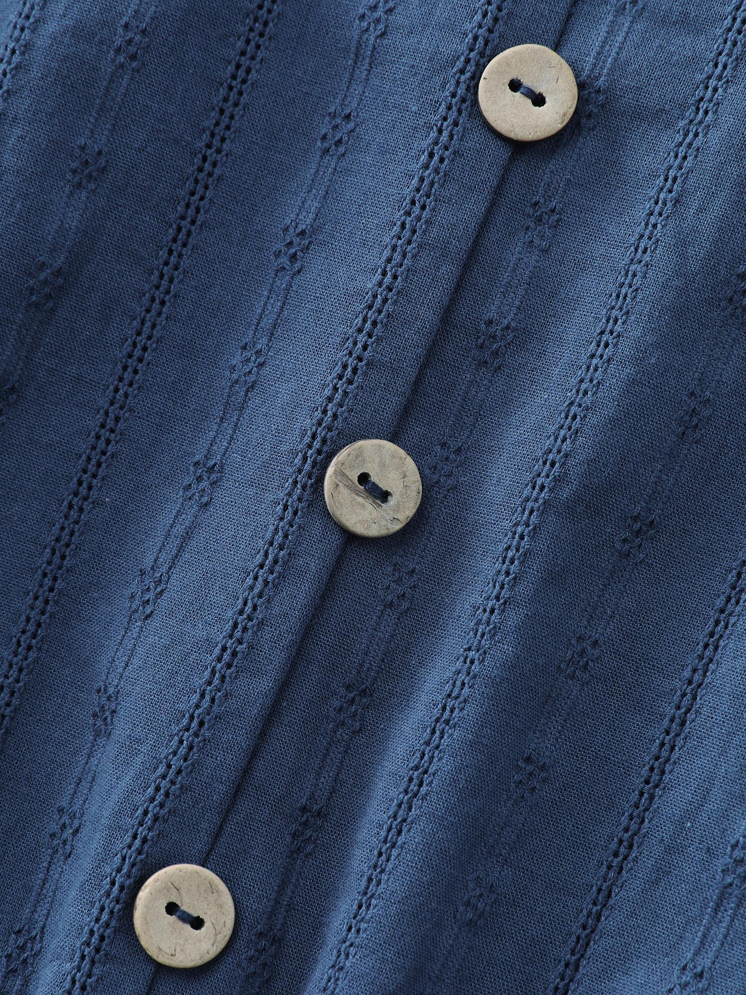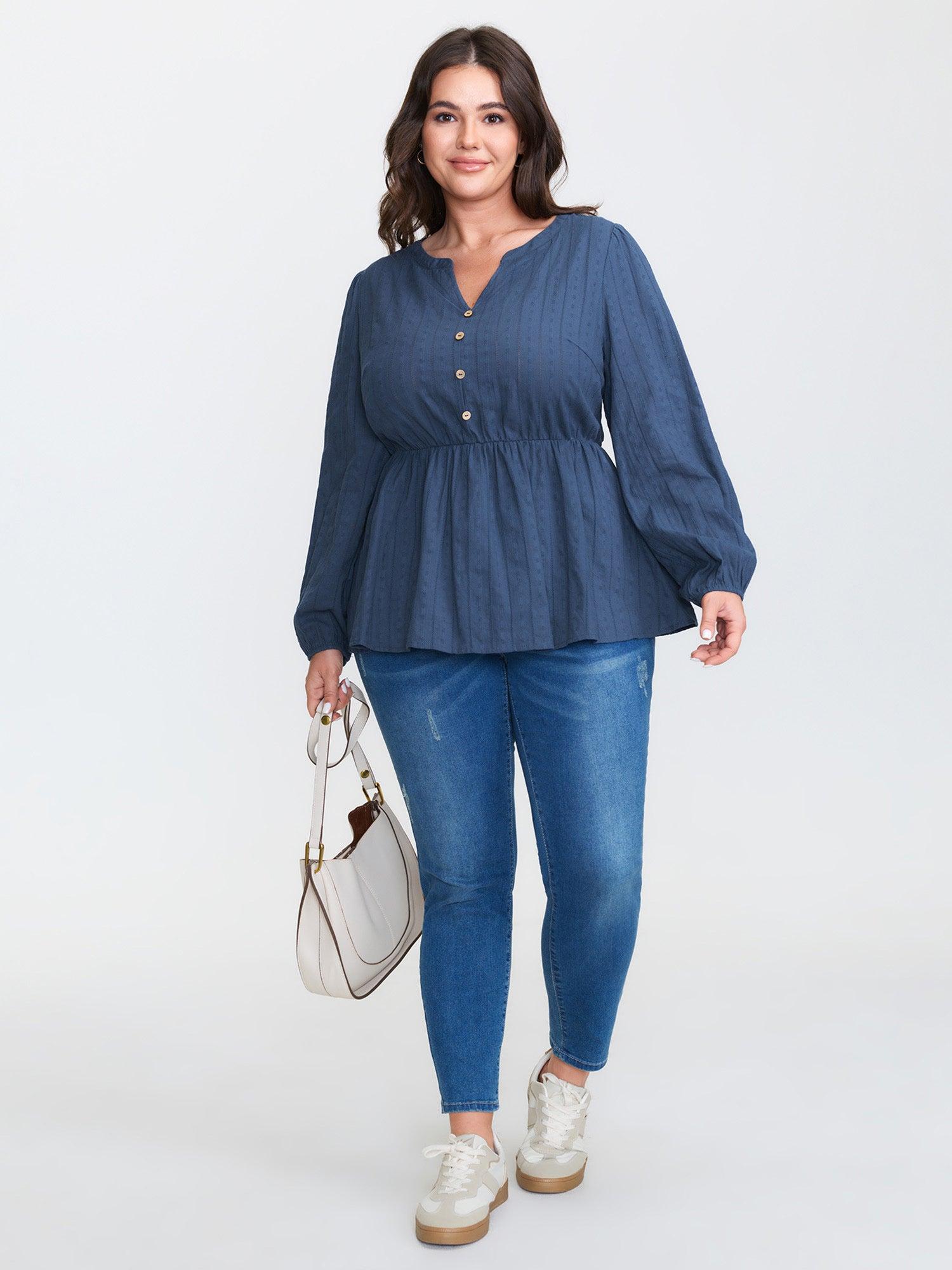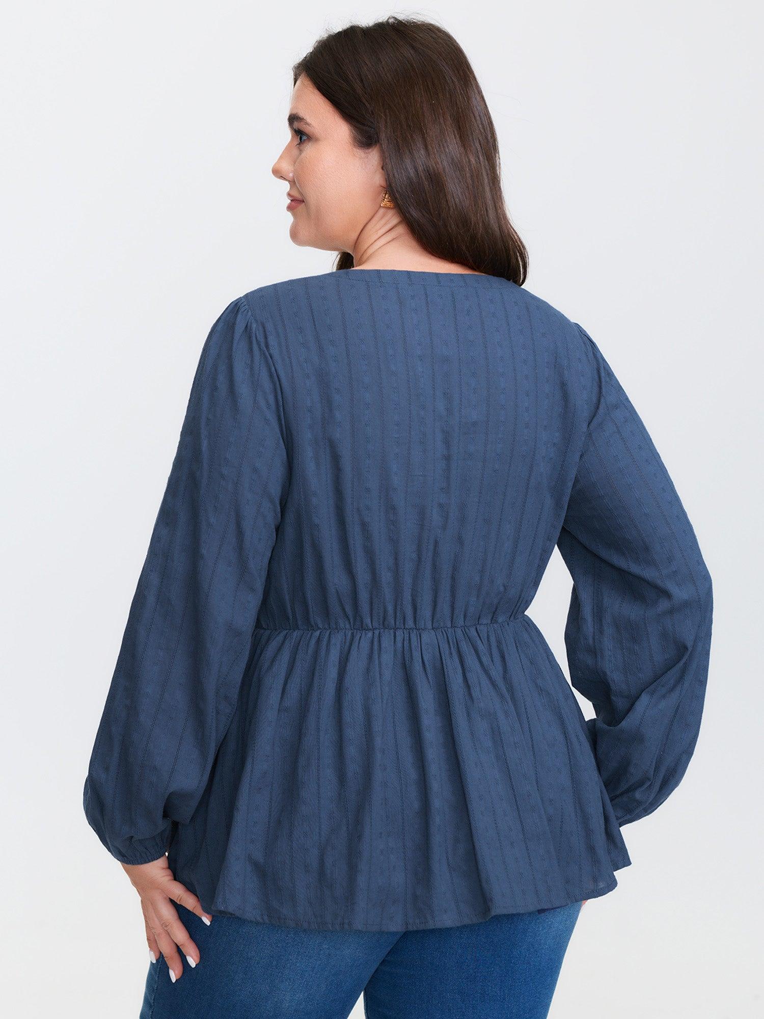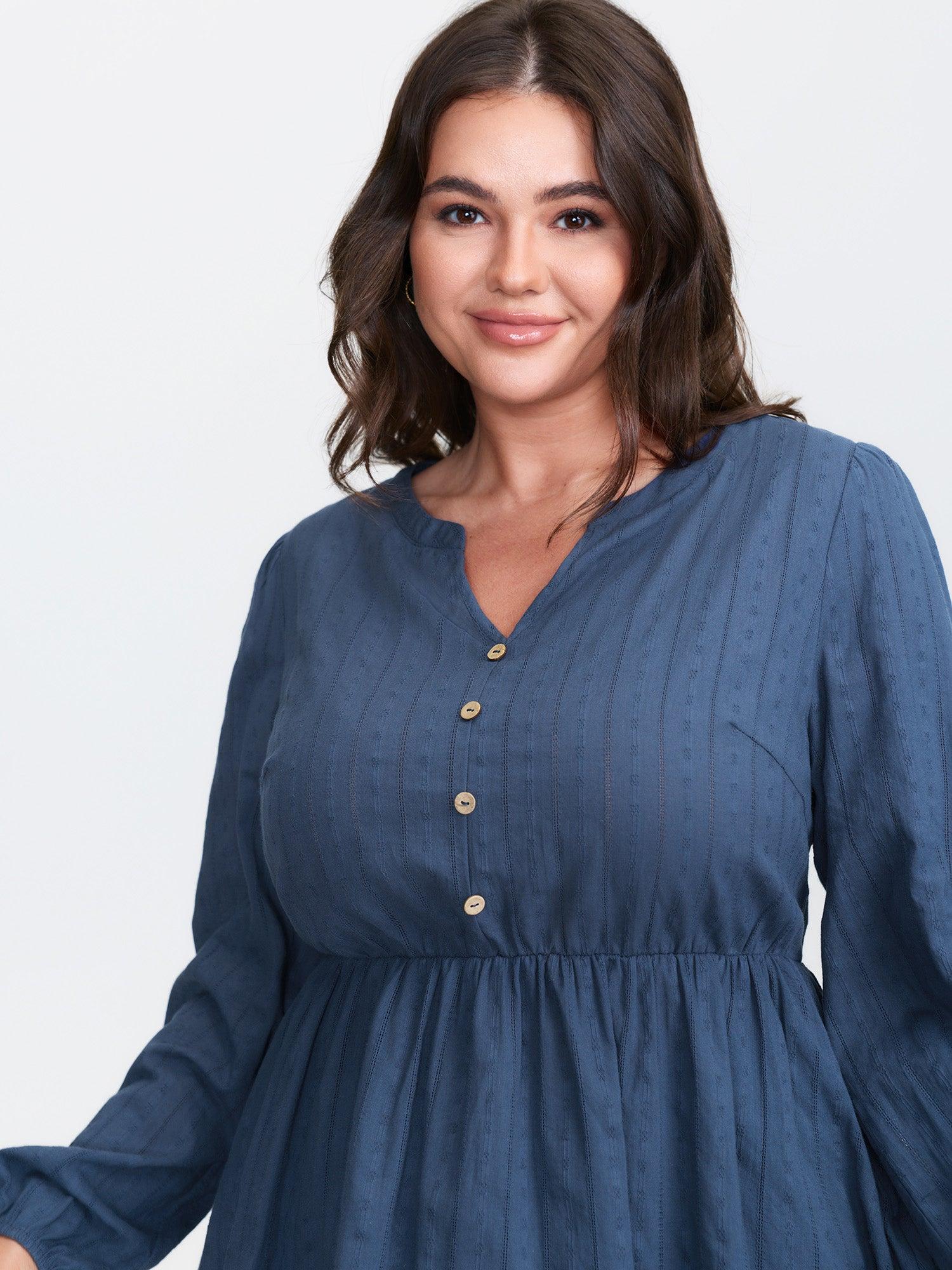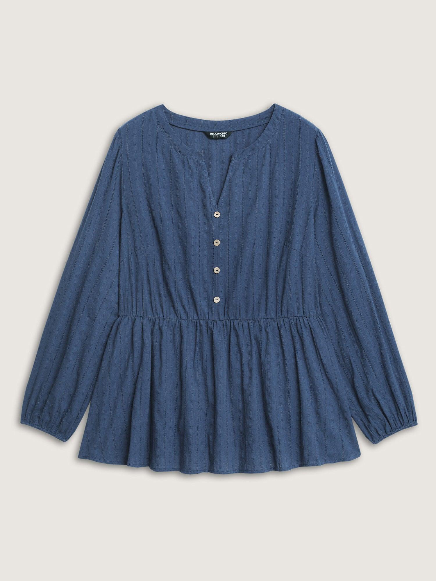 Shop Cotton Textured Cinched-Flared Blouse now and redefine your style with confidence at BloomChic. Tailored for mid and plus-size women. This trendy Tops Women, sizes 10-30. Color:DarkBlue;Style:Leisure;Prints:Non;Neckline:Notched collar;Sleeve Type:Regular Sleeve;Details:Texture, Button;Pocket:No-pocket