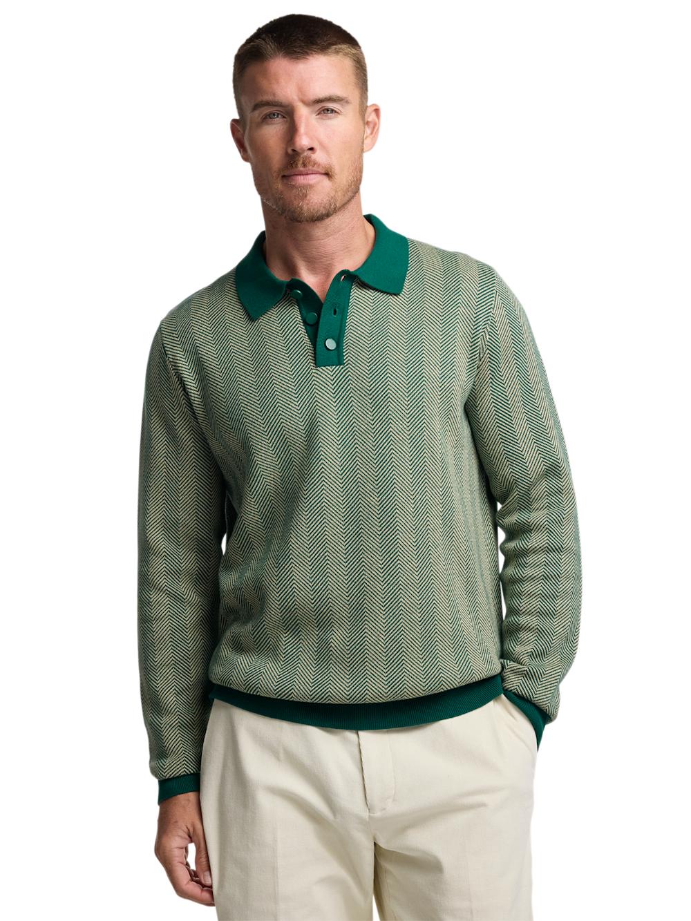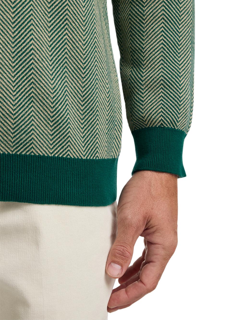 Cotton Full Zip Polo - Green