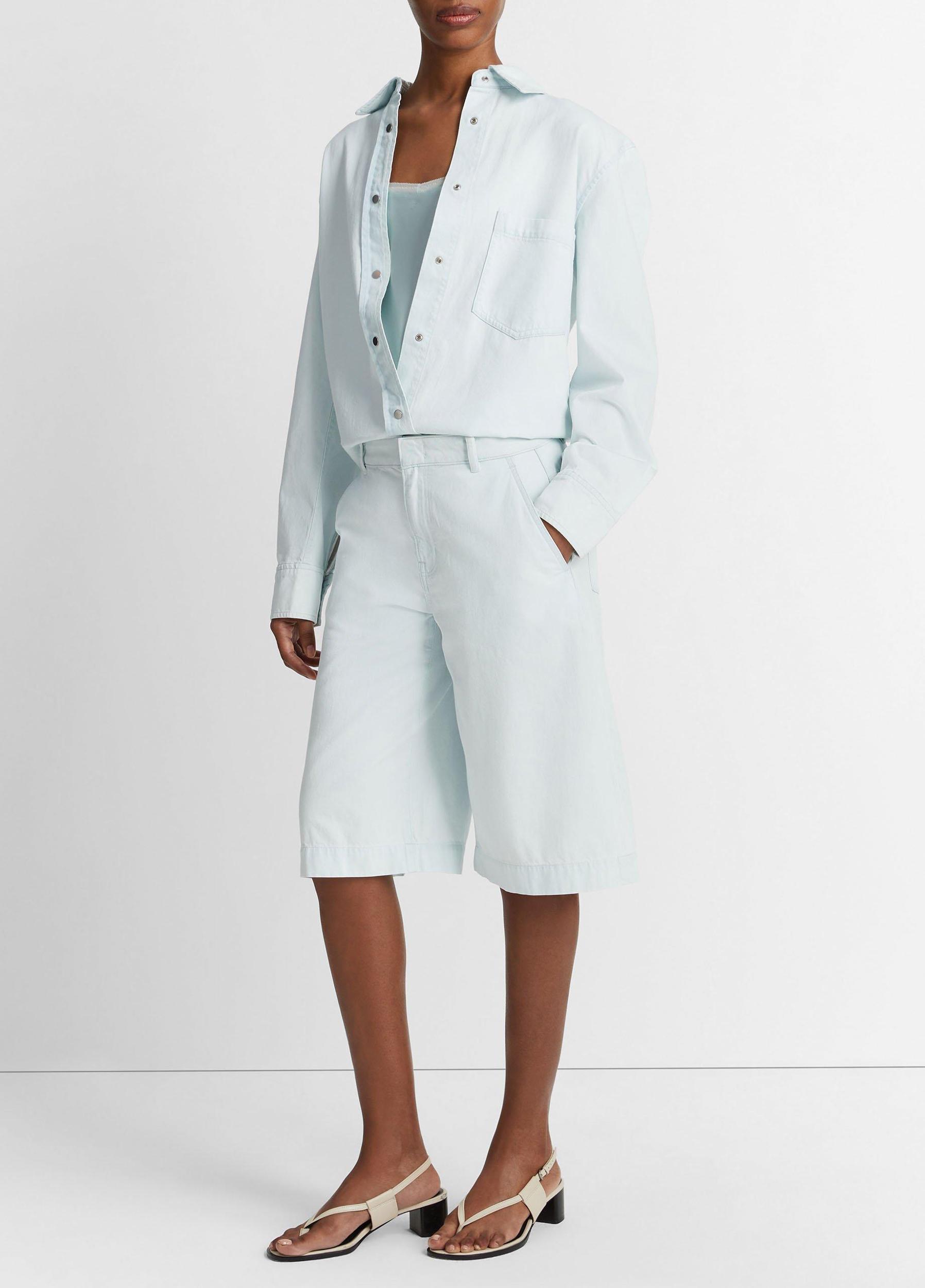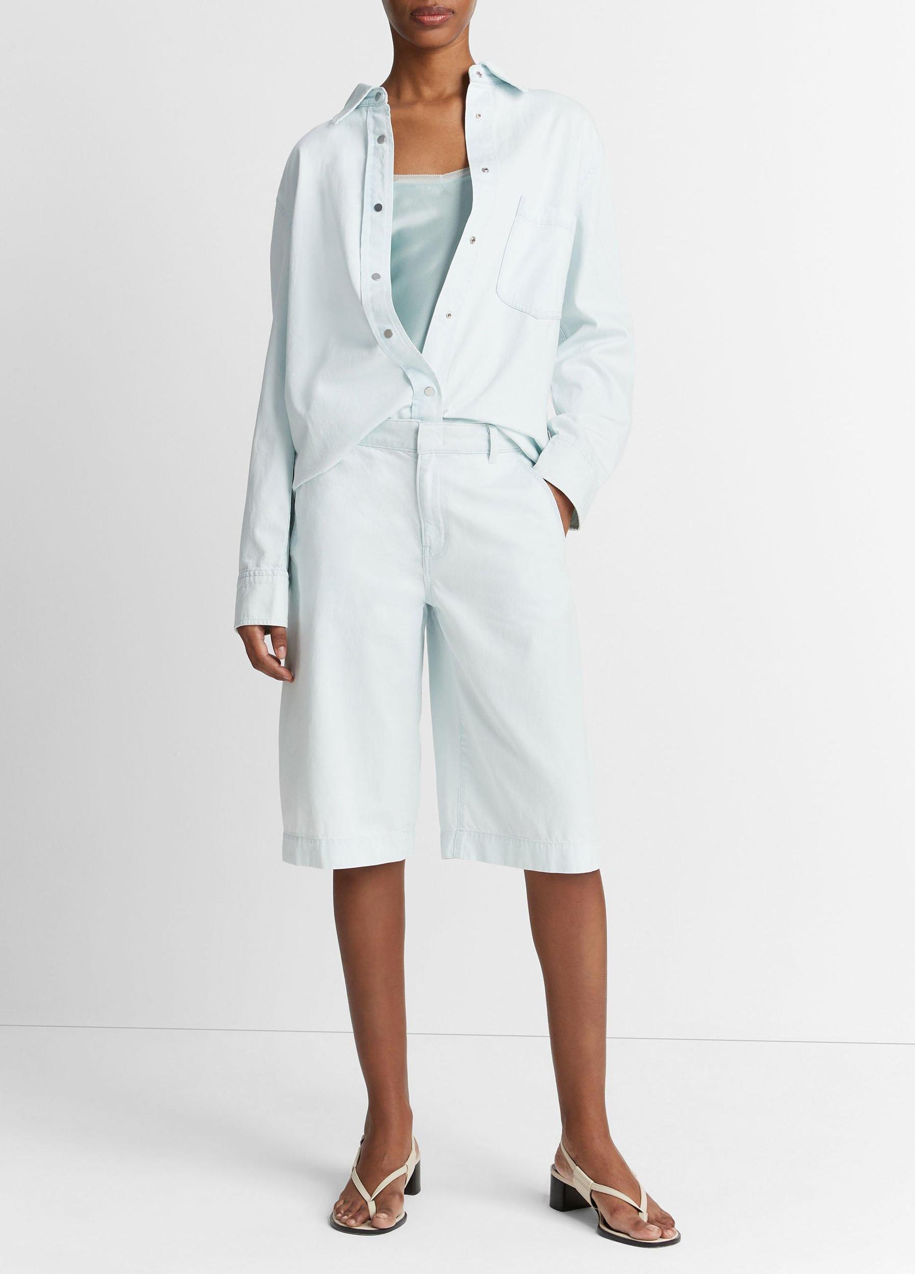 Designed to sit low on the waist, our casual Japanese cotton twill short is cut with a wide leg that hits just below the knee, adding a relaxed ease to camisoles, knits and shirting alike.