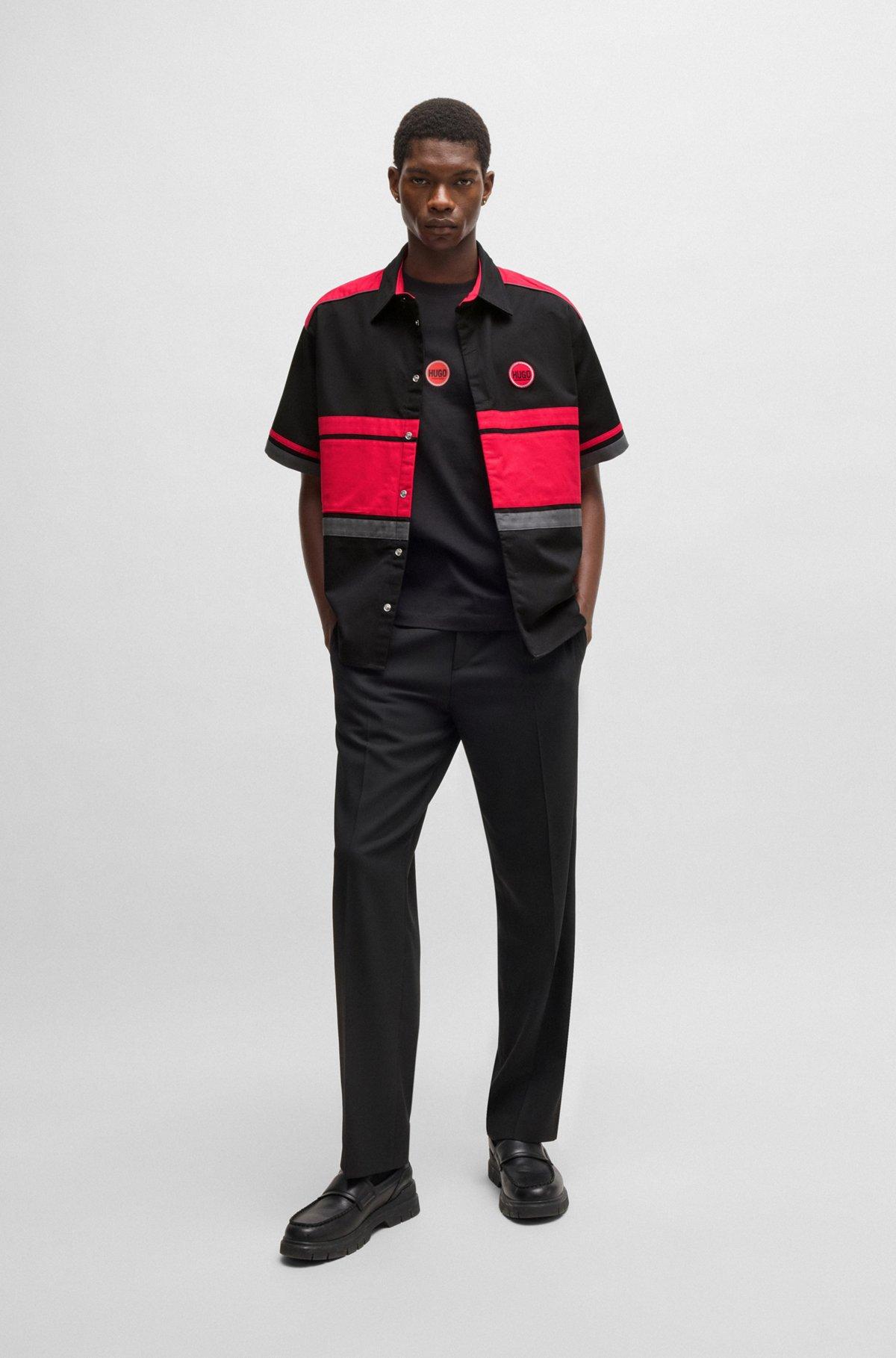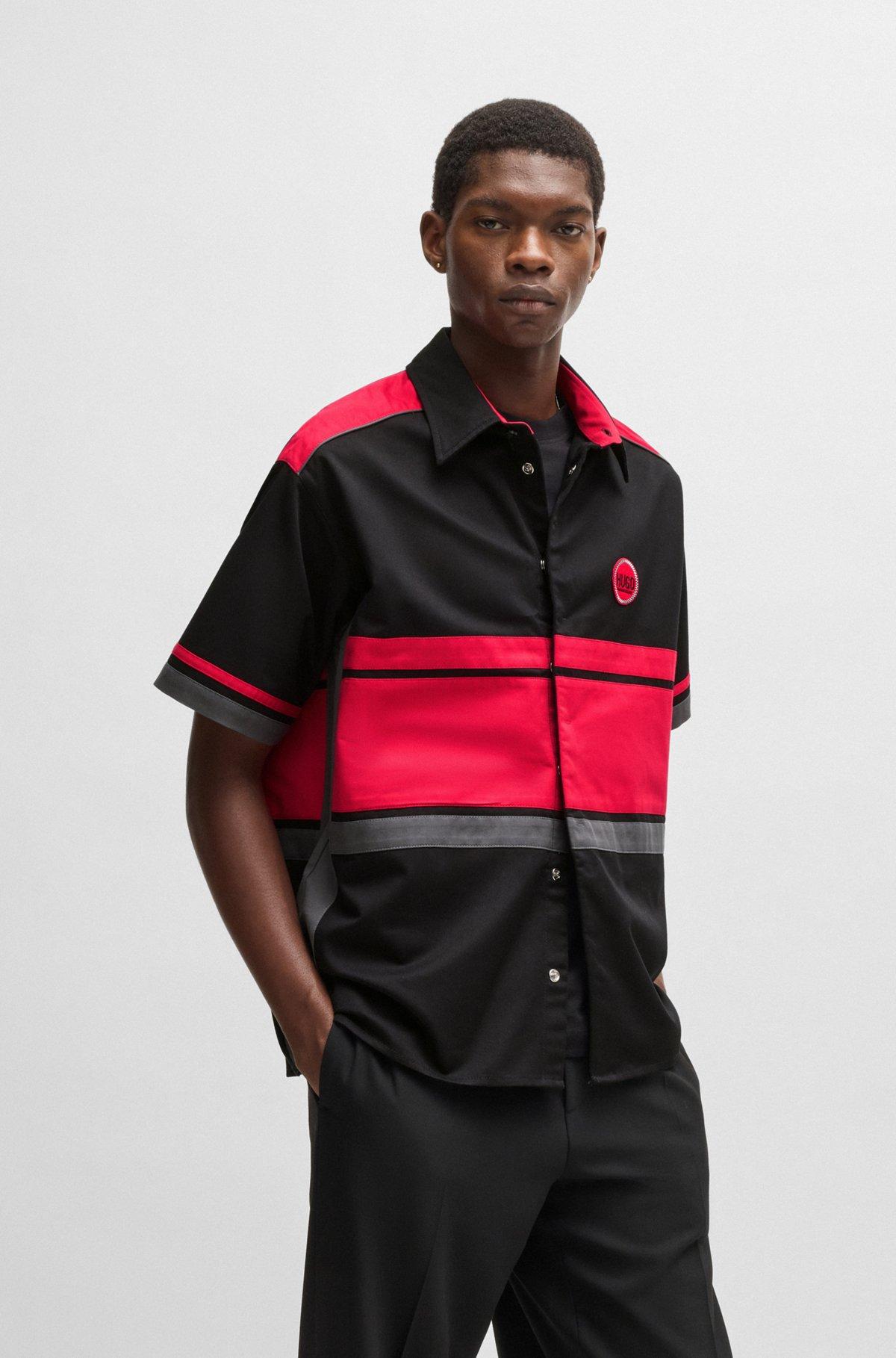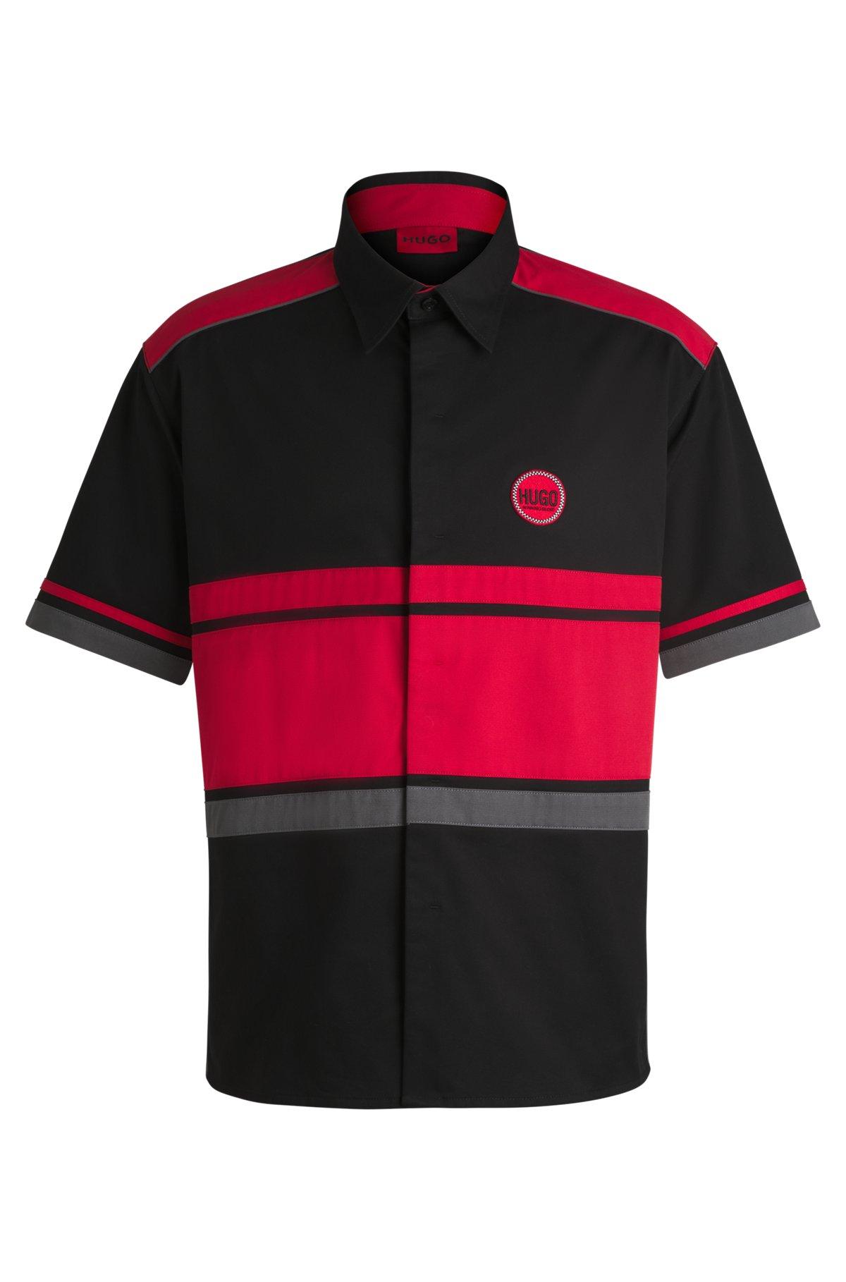 Cotton-twill shirt with racing-inspired block stripes - Black Shirts from HUGO for Men for in the official HUGO BOSS Online Store free shipping