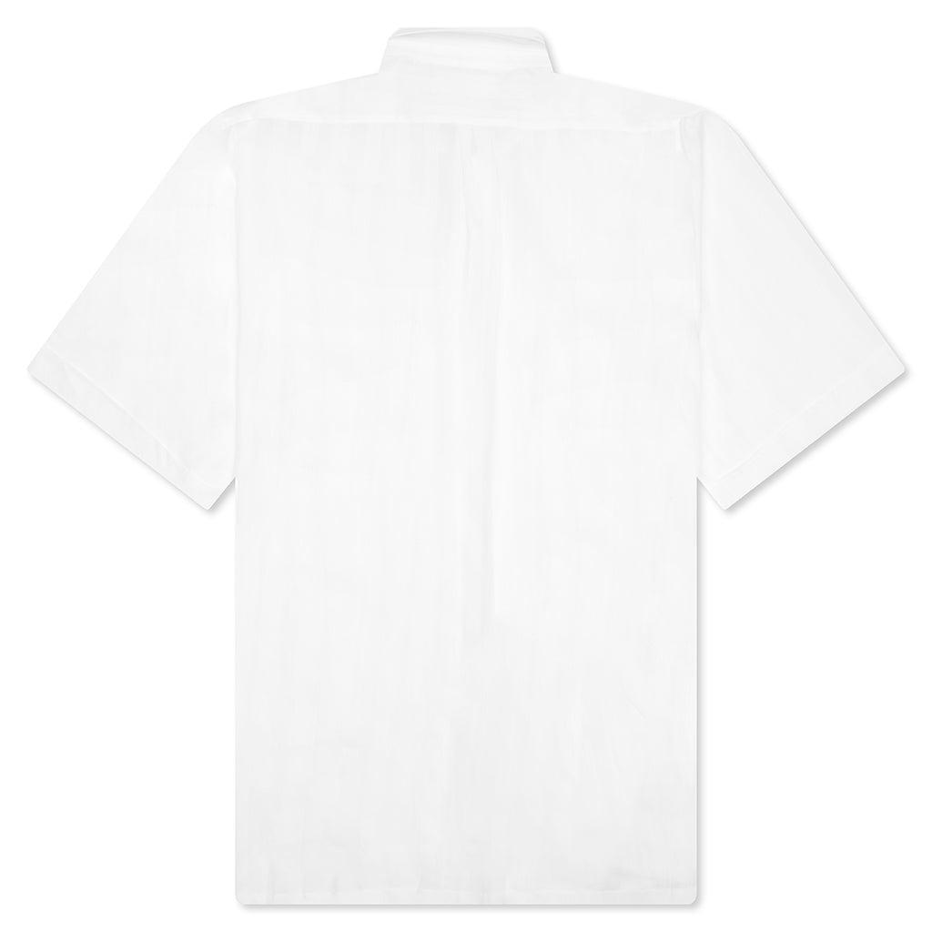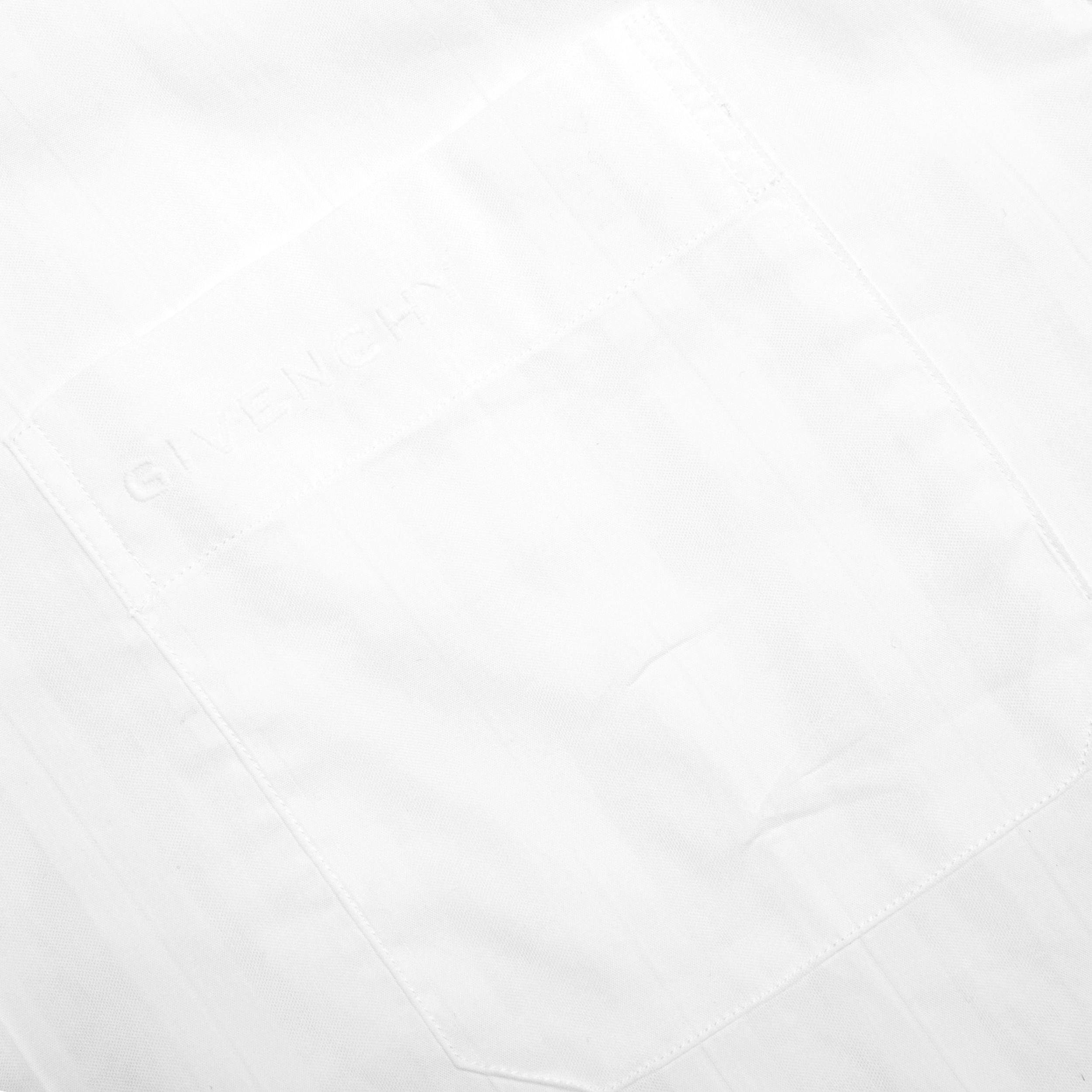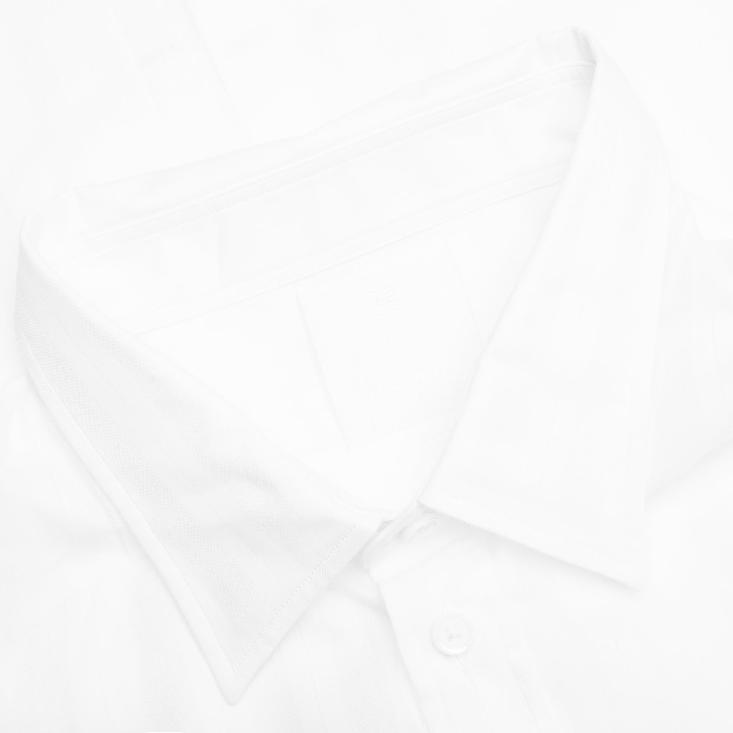 The Givenchy Cotton Voile Shirt With Stripes in White is a stylish and versatile addition to your wardrobe. Made from lightweight cotton voile, this short-sleeved shirt features classic stripes for a timeless look. It includes a classic collar, a chest pocket with the small Givenchy signature embroidered, and buttoned closure. The shirt is designed with small slits on the sides and offers a classic fit, making it perfect for various occasions. Lightweight cotton voile construction Classic collar Chest pocket Embroidered Givenchy signature Buttoned closure Classic fit with small side slits Style no: BM60ZZ15EJ-100
