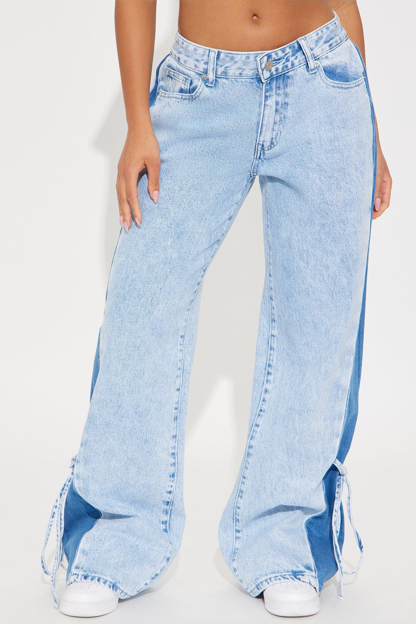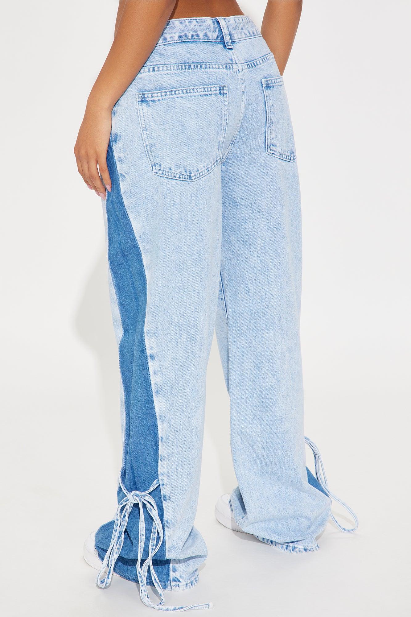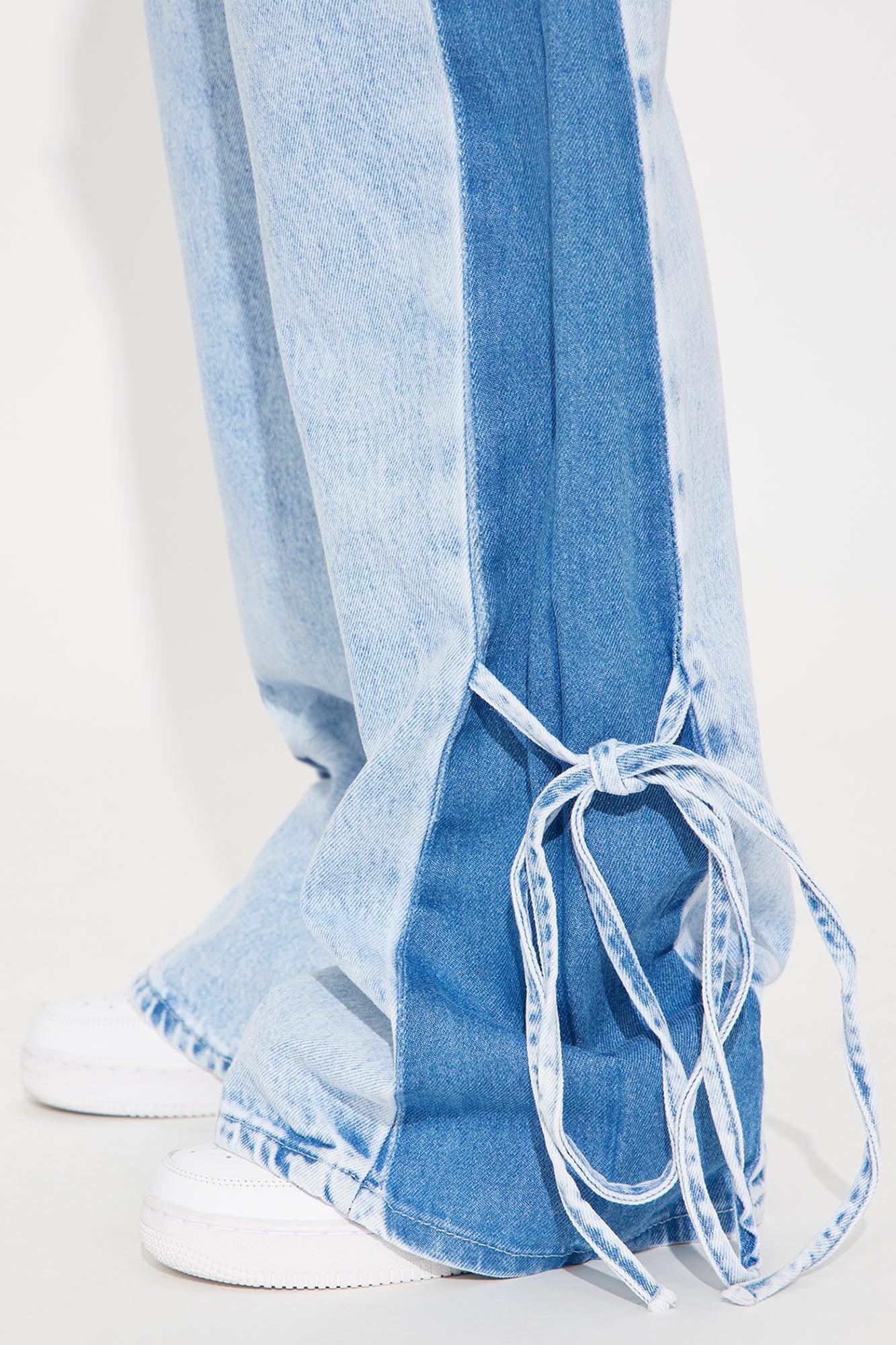 Couldn't Forget It Two Tone Wide Leg Jeans - Light Wash