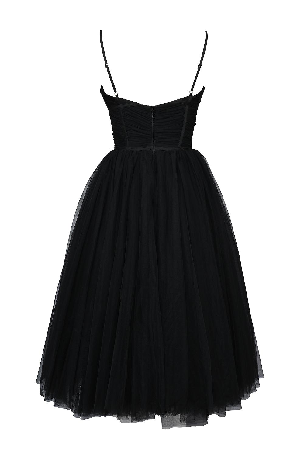 Give your dress repertoire the royal treatment with the ‘Countess’ in black—a dramatic midi tulle dress that’ll get 10s across the board. The plunging neckline is softened by delicate black tulle, with adjustable straps for that perfect, bespoke feel.