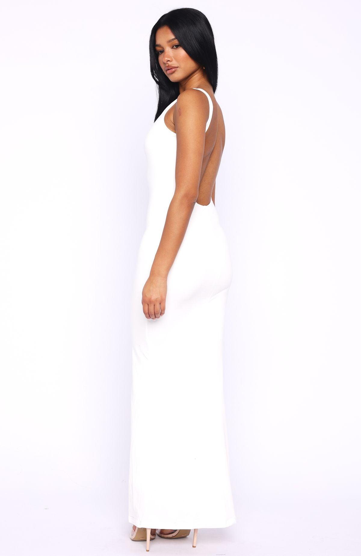 Get your fashion fix with the Country Club Maxi Dress White. Its high jewel neckline and sleeveless, fitted silhouette create a sleek, sophisticated shape that flatters your form. The low back and high-stretch fabric add subtle allure, while the fully lined construction ensures a smooth drape. Style with elevated sandals and layered gold jewellery for an effortlessly chic look.