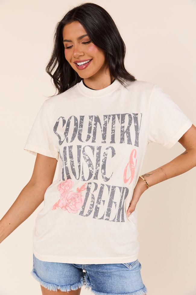 Details Ivory t-shirt with Country Music & Beer design Relaxed fit, size up 2 sizes for an oversized fit Crew neckline, short sleeves Size small from shoulder to hem: 28" Material and care Comfort Colors Tee 100% cotton Machine wash cold, hang dry Materials may have natural variations Colors may vary from different viewing devices. PLEASE NOTE: You may notice some off-white residue or slight discoloration when you first receive your shirt. Please do not worry! This comes from the special solution we use for printing the design on your shirt. It can sometimes leave marks during the drying process. These are not stains and will wash off after the first wash cycle. To keep your shirt's design as beautiful as possible, we do recommend washing this garment inside out on the gentle cycle with cold or lukewarm water. You can either tumble dry low or line dry.