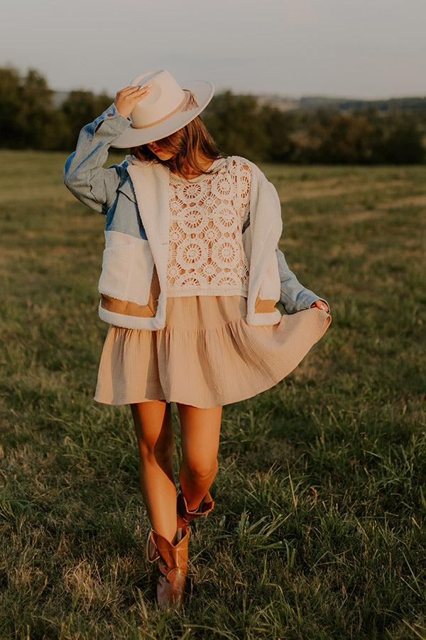 - Keep it countryside cozy with this adorable sherpa jacket! From cool morning strolls to bonfire cuddles, this piece is sure to keep the chill out. Layer on the style with this trendy jacket! - A combination of fully lined faux suede, denim, and sherpa materials - A collared v-cut neckline - Three button closure - Long sleeves with button closure cuffs - Faux chest pocket accents - Functional side pockets - A relaxed silhouette that ends in a straight hemline