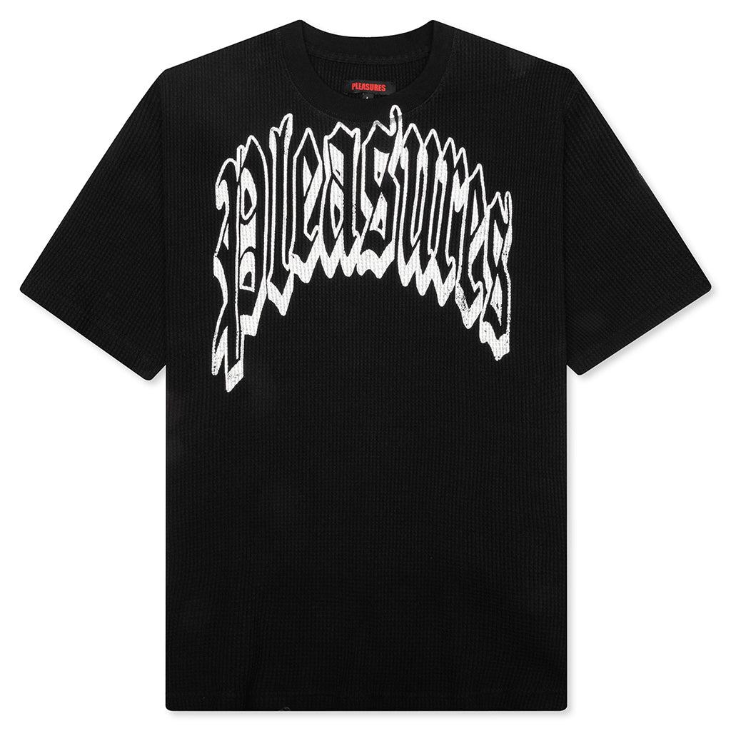 Upgrade your graphic tee collection with the Pleasures Twitch Waffle Shirt. Composed of cotton, this garment has a waffle-knit fabrication and a boxy fit. A comfortable crew neckline is placed, and the plastisol printed graphic at the chest adds dimension and rounds out the look. 100% Cotton 310GSM fabric Waffle-knit Boxy fit Crew neckline Plastisol printed graphic Style No: P25SP024-BLACK P25SP024 BLAC