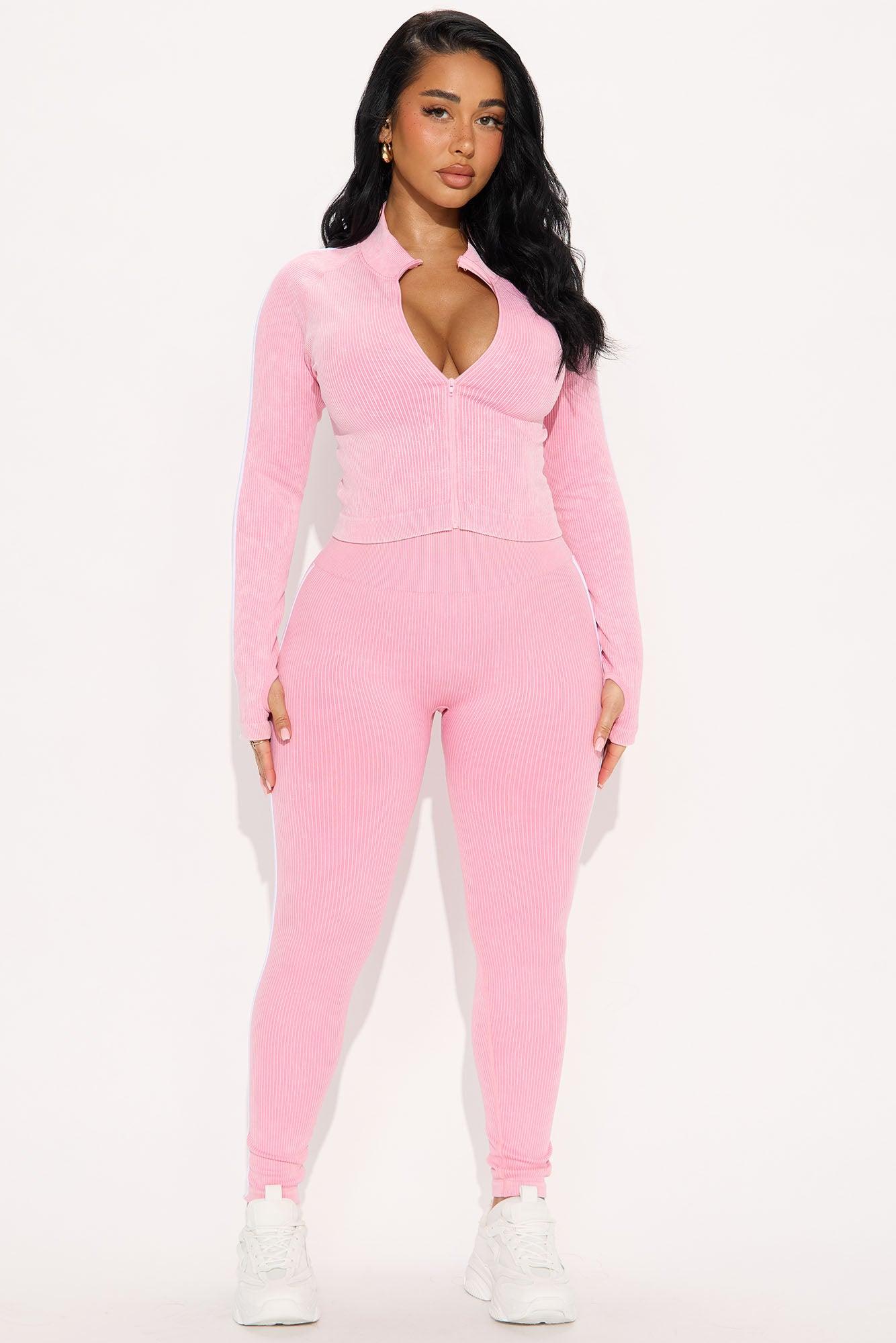 Available In Bubblegum Pink And Black. Active Jacket Mock Neck Long Sleeve Seamless Ribbed Washed Contrast Trim Thumbholes High Impact Stretch Pair With "Court Social Seamless Ribbed Active Legging" 92% Nylon 8% Elastane Imported California Proposition 65 WARNING: Cancer and Reproductive Harm - www.P65Warnings.ca.gov.