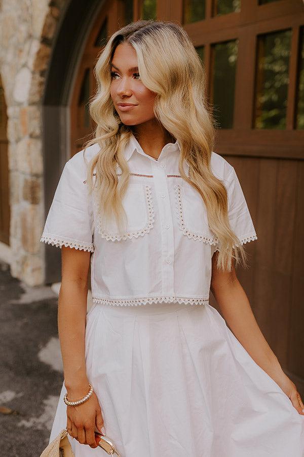 - This chic top is all about standout details! Scalloped lace trim and gold stud accents bring just the right touch of style to instantly pull any outfit together.
