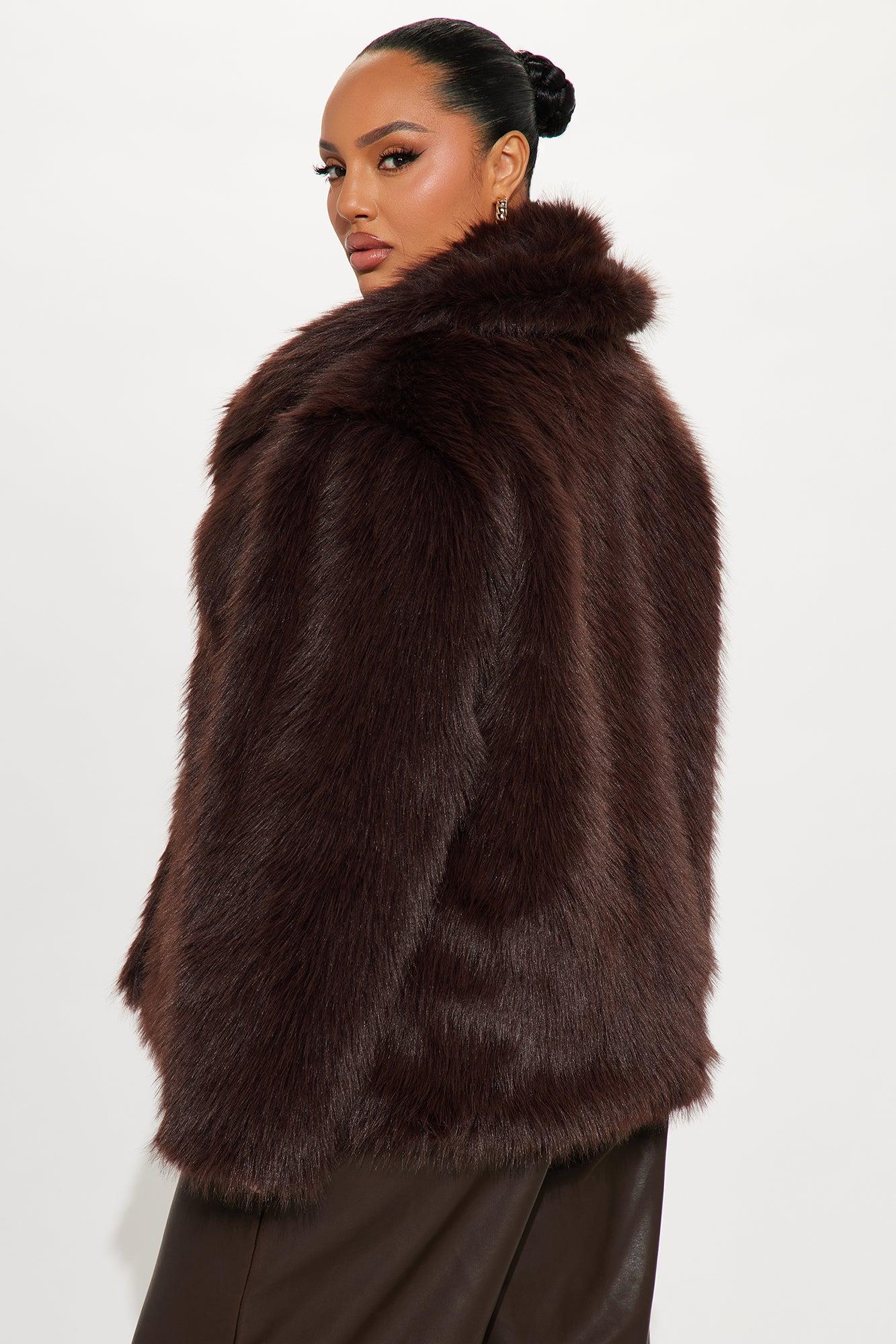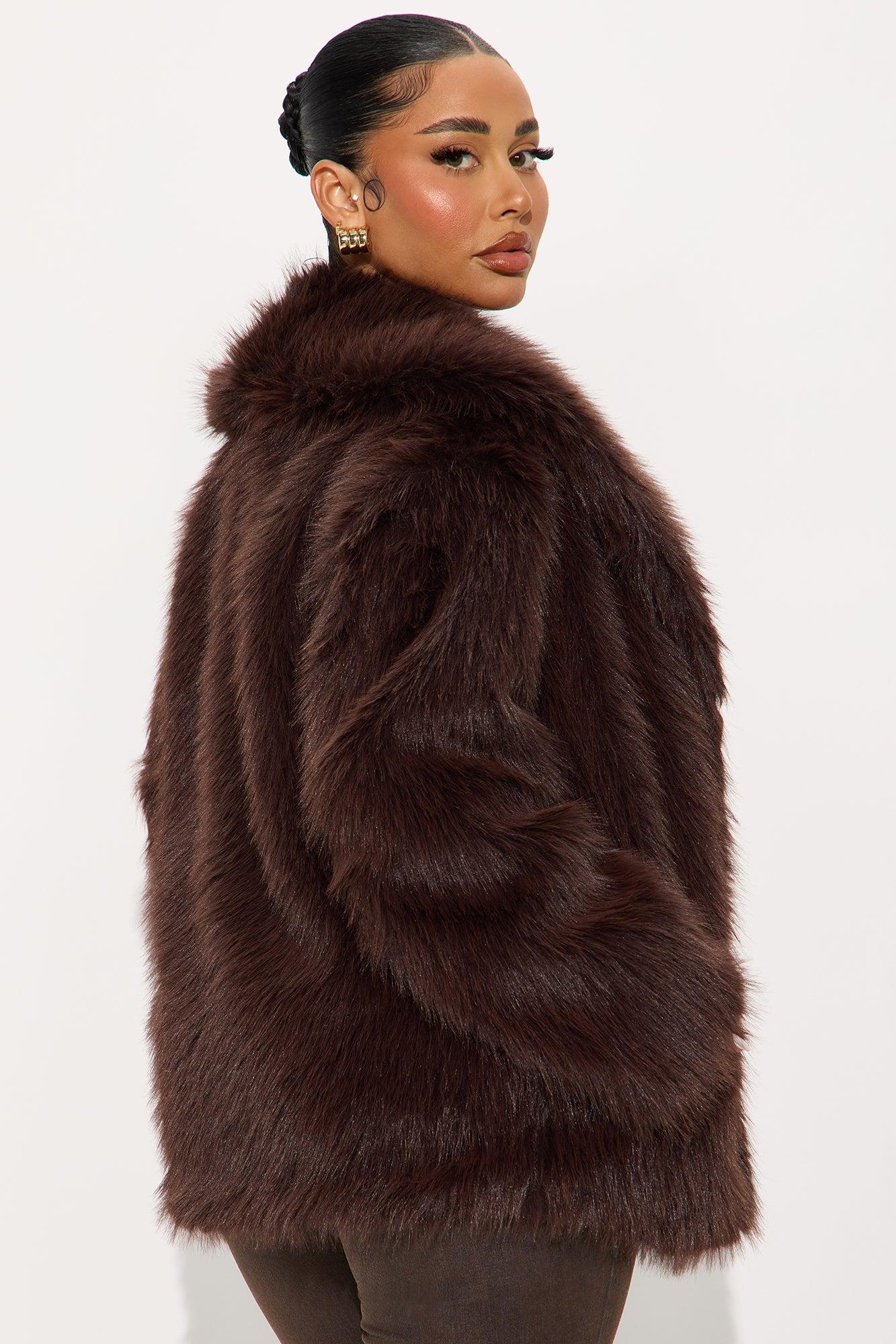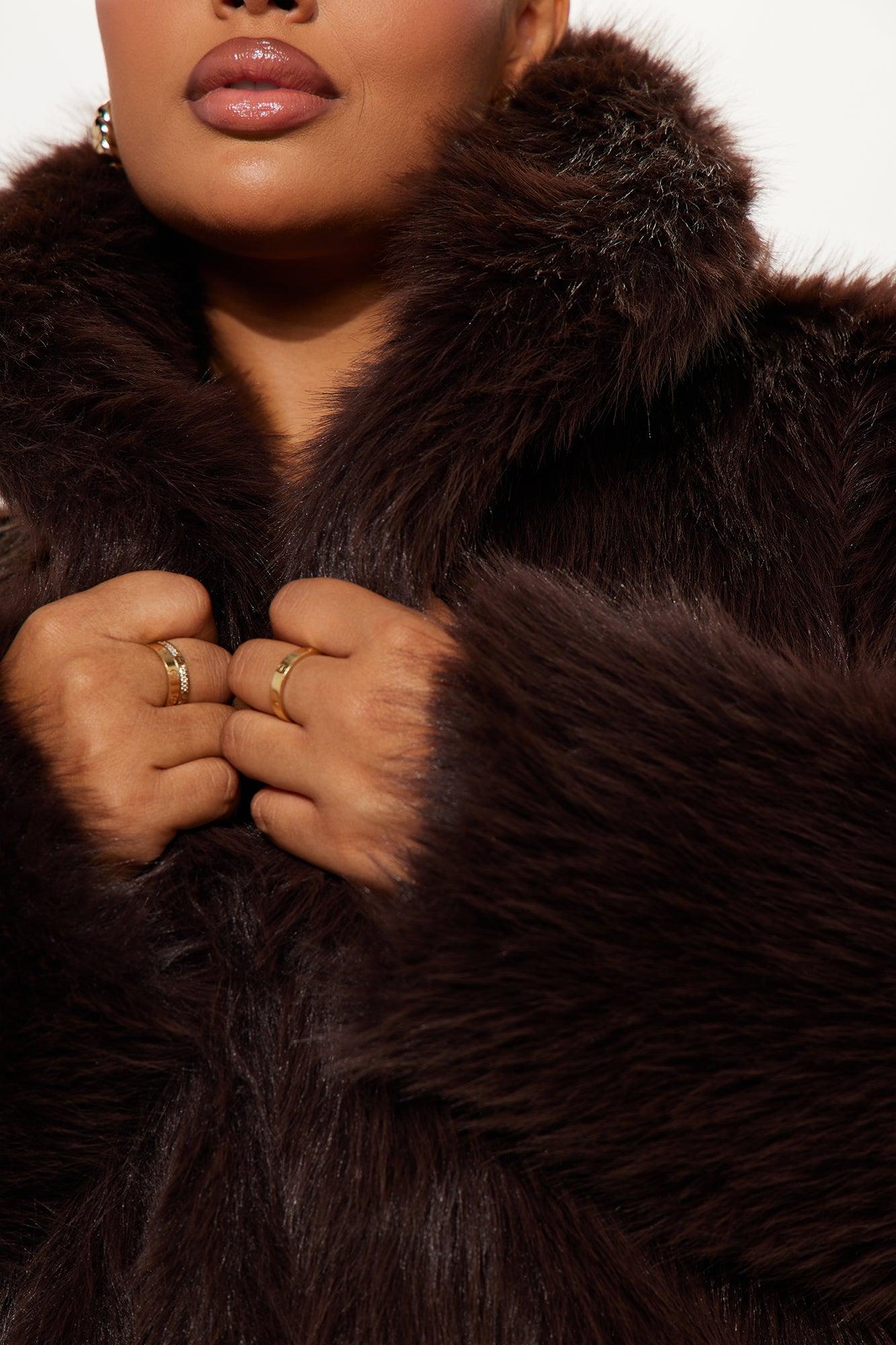 Available In Black, Chocolate And Stone. Coat Lapel Collar Long Sleeve Faux Fur Button Closure Fully Lined Faux Fur: 100% Polyester Lining: 100% Polyester Imported California Proposition 65WARNING: Cancer and Reproductive Harm - www.P65Warnings.ca.gov.